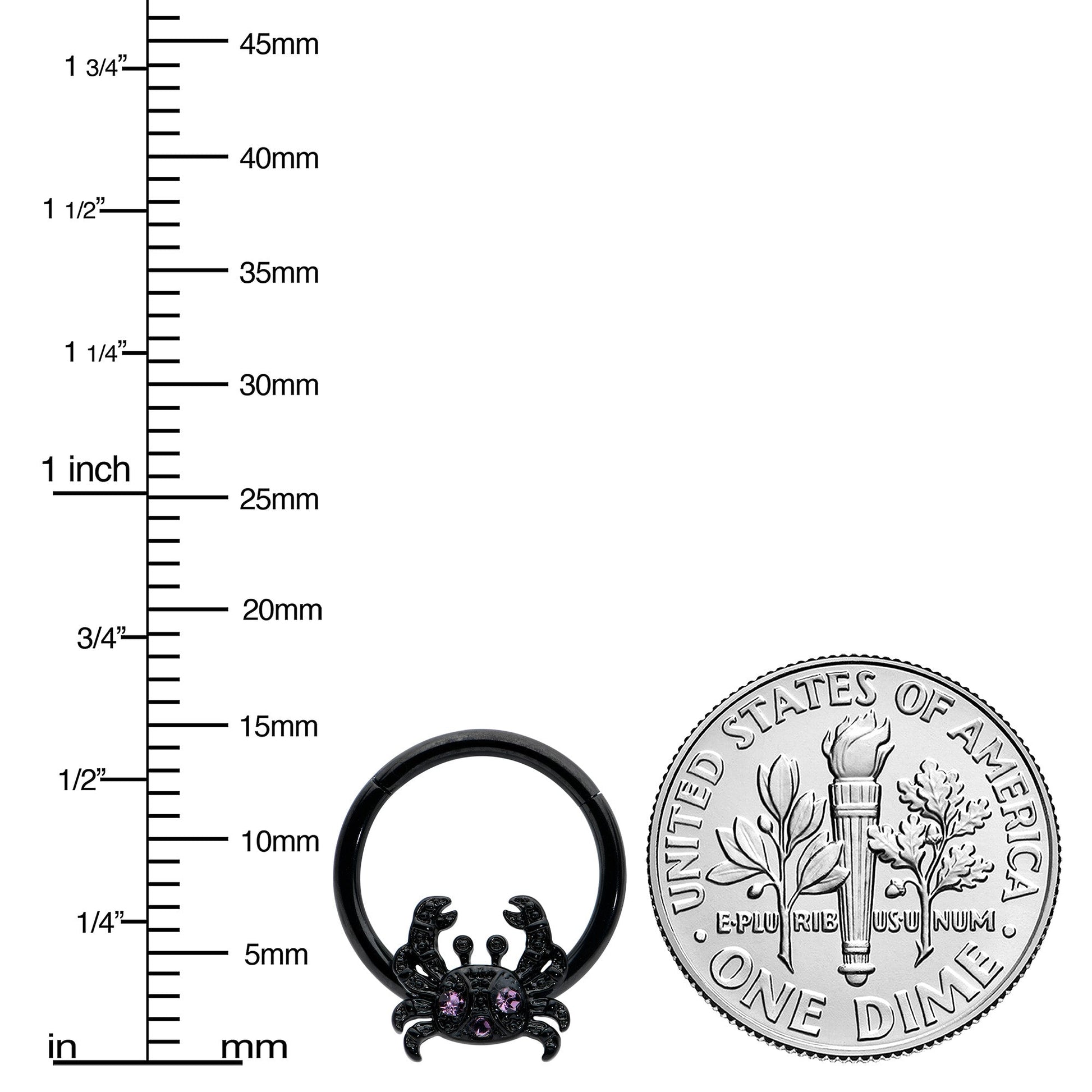 16 Gauge 3/8 Purple Gem Black Chic Crab Hinged Segment Ring