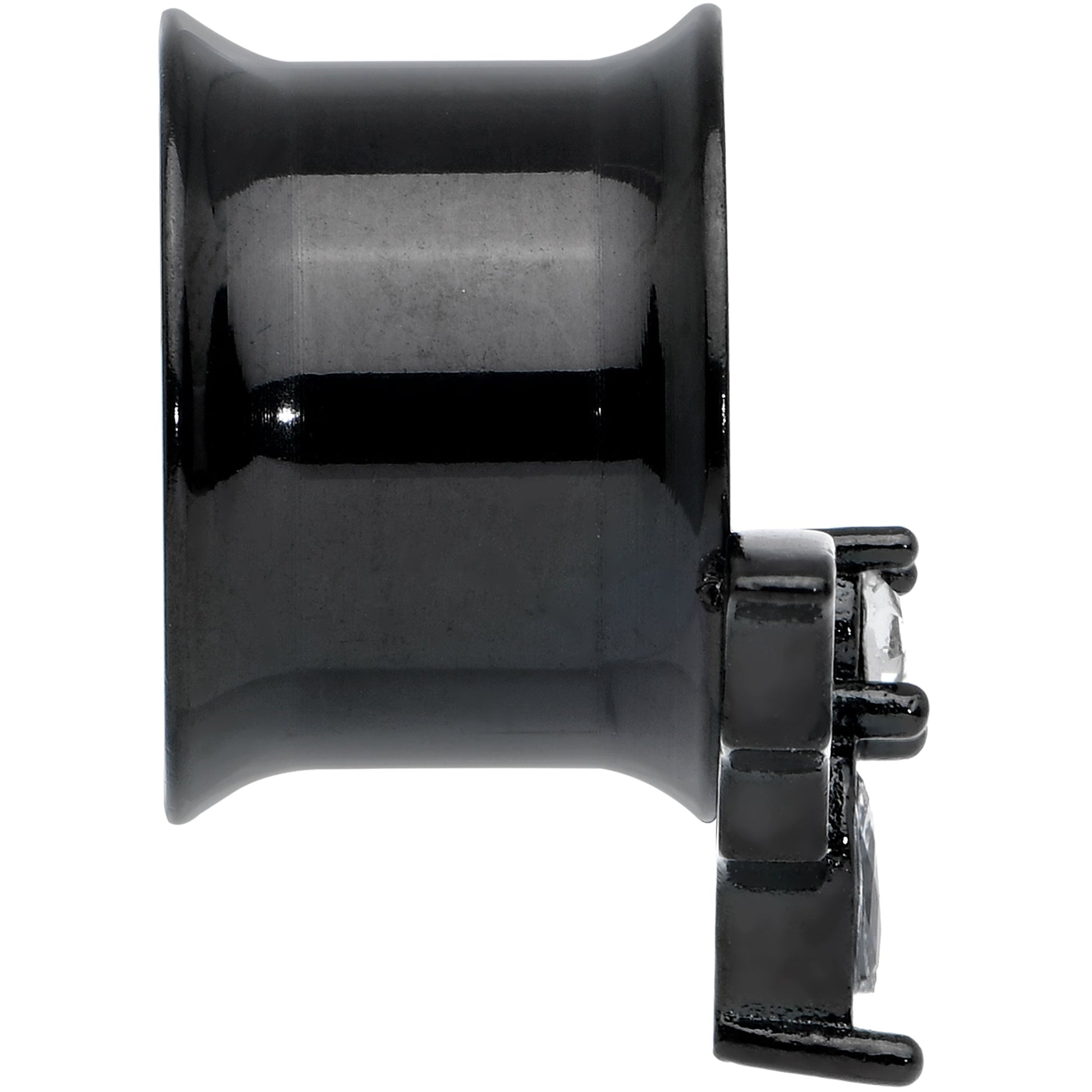 Clear Gem Black Bat Halloween Double Flare Tunnel Plug Set
