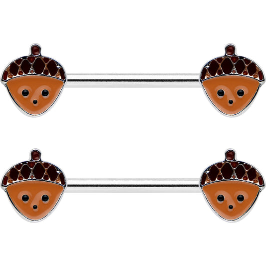 14G 9/16 Autumn Acorn Face Brown Fall Barbell Nipple Ring Set
