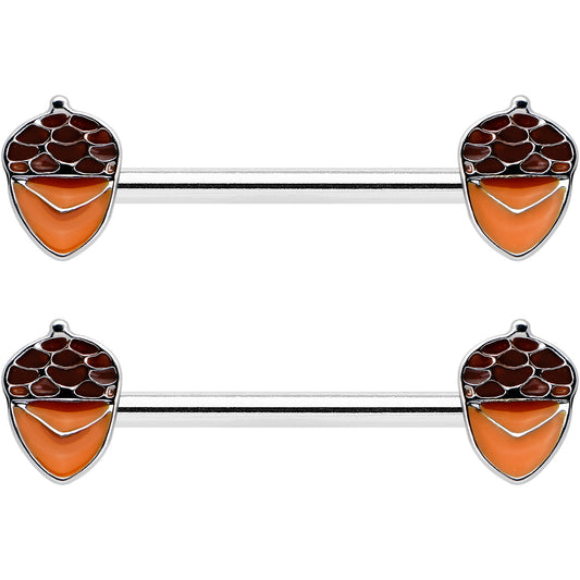 14G 9/16 Autumn Acorn Brown Orange Barbell Nipple Ring Set