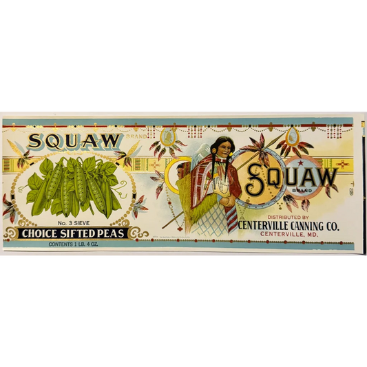 Rare Antique 1920s Squaw Brand Peas Label from Maryland Cannery