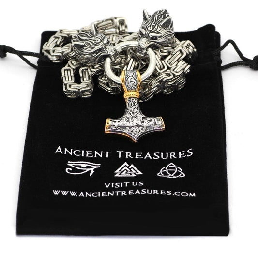 Vikings Wolf Mjolnir Stainless Steel King Chain Necklace
