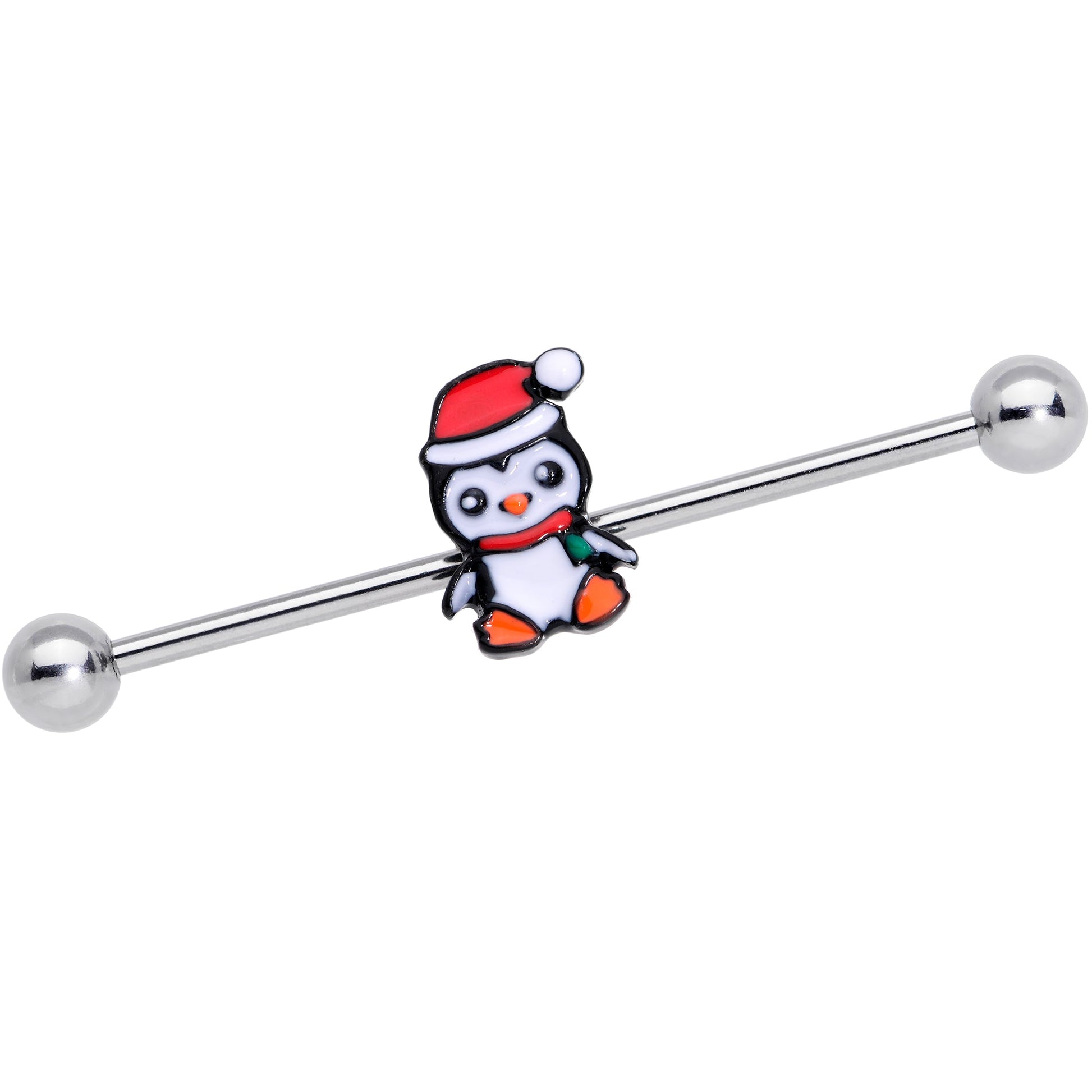 14 Gauge Santa Penguin Christmas Industrial Barbell 38mm