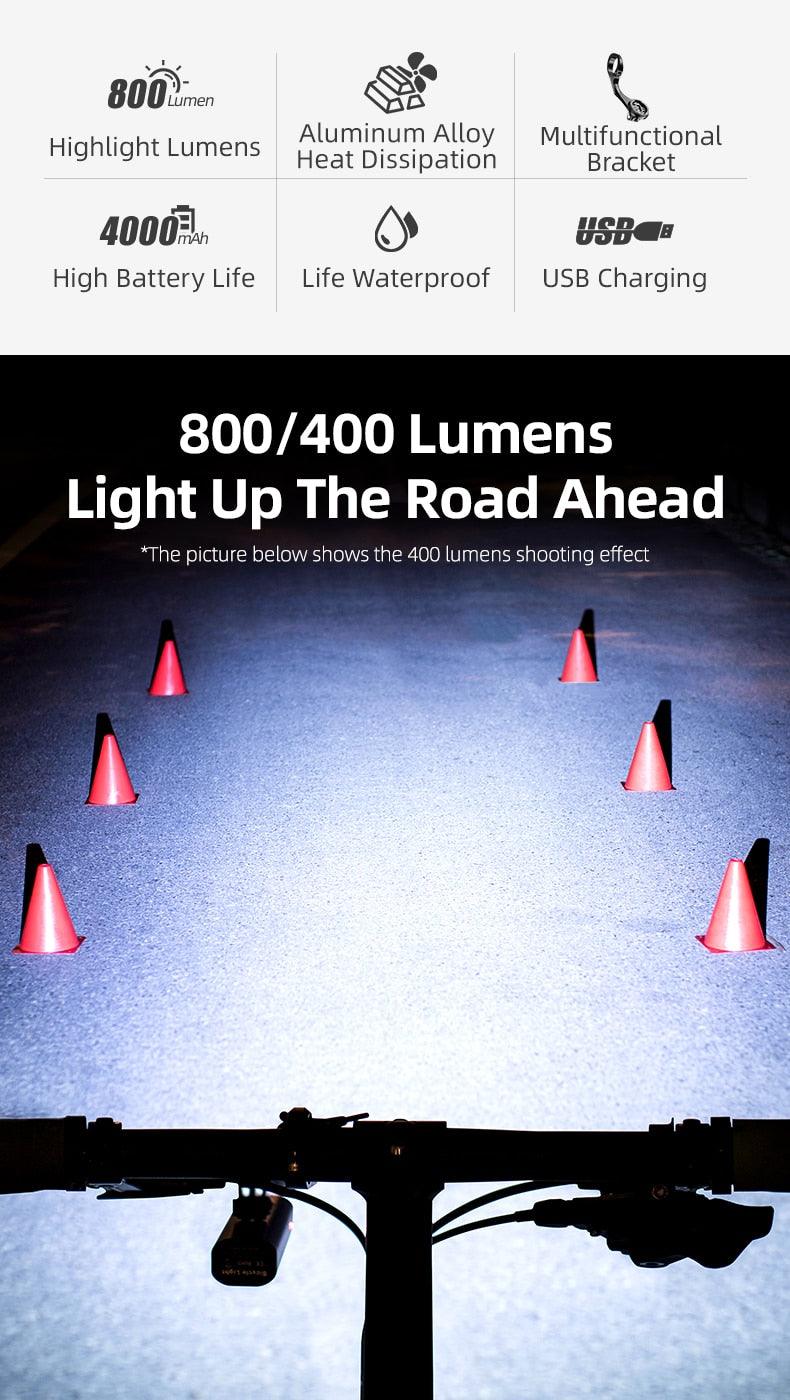 Bike Light Front Lamp USB Rechargeable LED 4800mAh Bicycle Light Waterproof Bicycle Light Set USB Rechargeable Super Bright Bike Headlight For Night Riding Bracket 1000LM