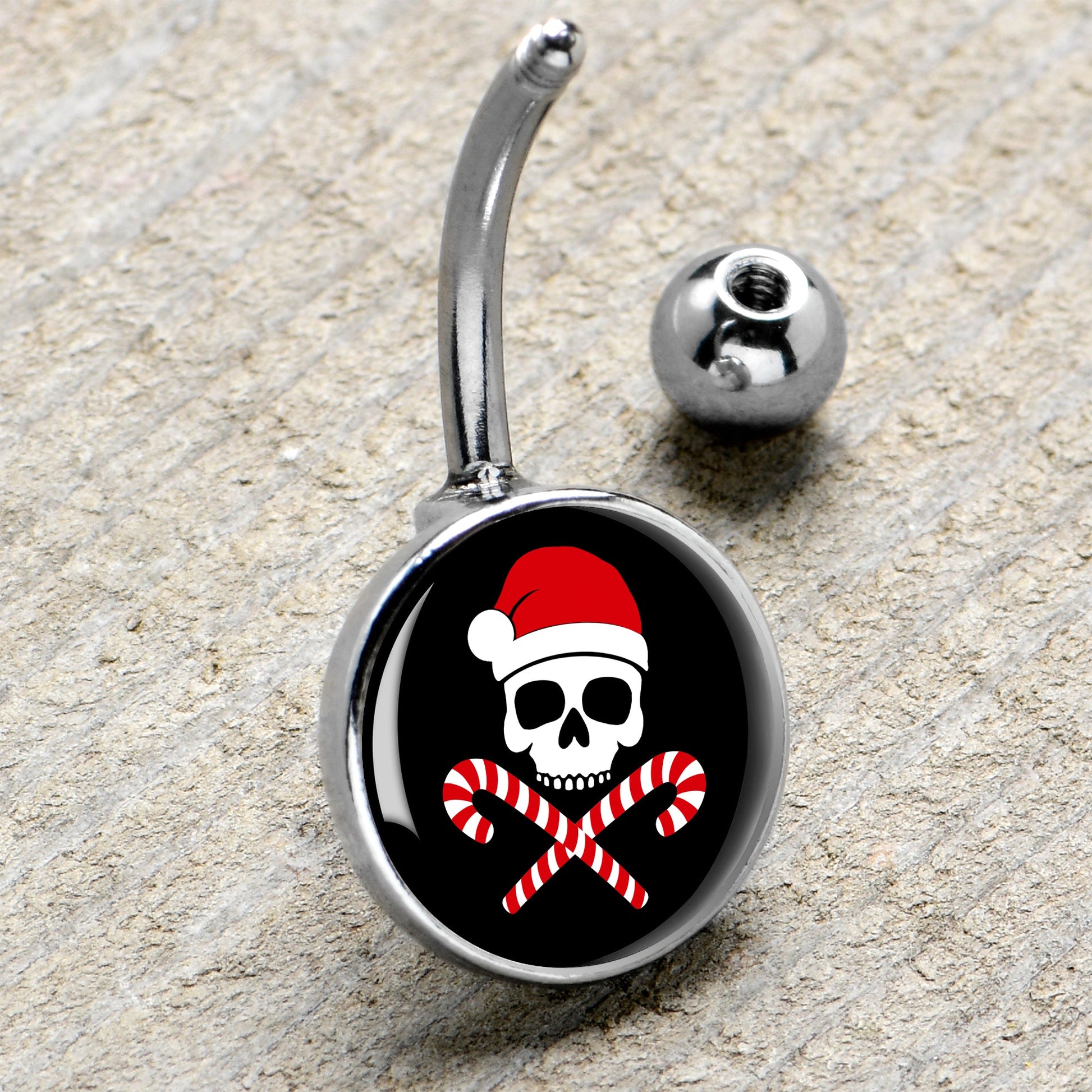 Hypoallergenic belly ring for sensitive skinSanta Pirate Candy Cane Skull Belly Ring