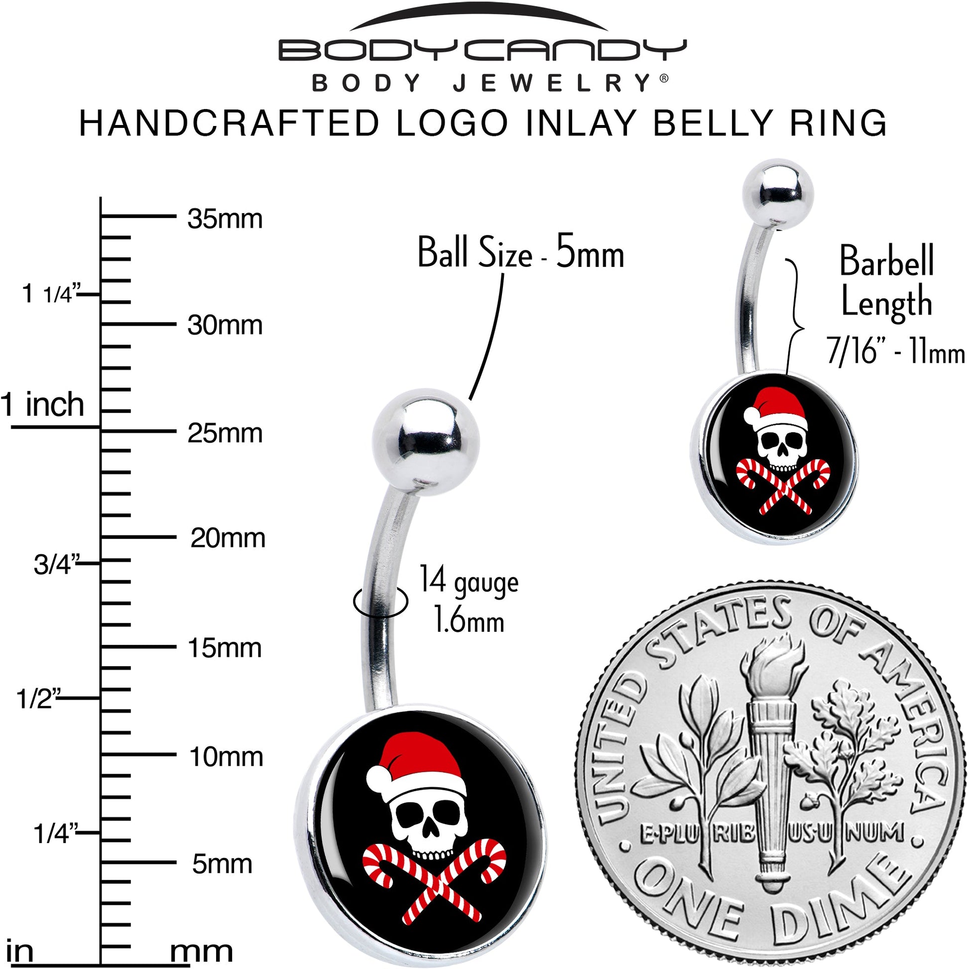 Make a statement with this durable 316L Surgical Steel belly button ring. This 14 gauge navel belly piercing ring is your ticket to standing out from the crowd. Don't just wear jewelry; wear art that tells a story ? your story. Sail the seas of holiday style with true pirate flair with this whimsically festive navel piercing jewelry.