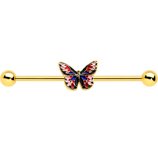 14G Gold Tone Red Blue Pink Butterfly Industrial Barbell 38mm