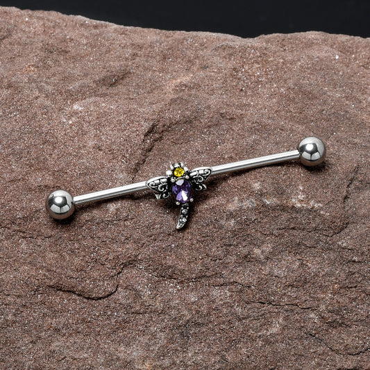 14G Purple Yellow Gem Dragonfly Industrial Barbell 38mm