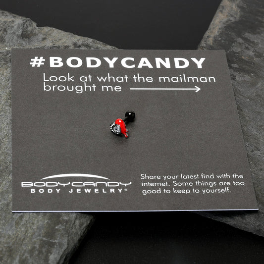 16G 1/4 Clear Red CZ Gem Black Floral Heart Cartilage Earring