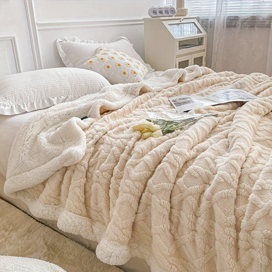 [Versatile Use] Luxurious Double-Layer Jacquard Taffeta Fleece Blanket, Thick Plush White Bed Throw for Single or Double Use - Soft, Cozy, All-Season Comfort, Ideal for Bedroom Elegance, Blanket for Bed
