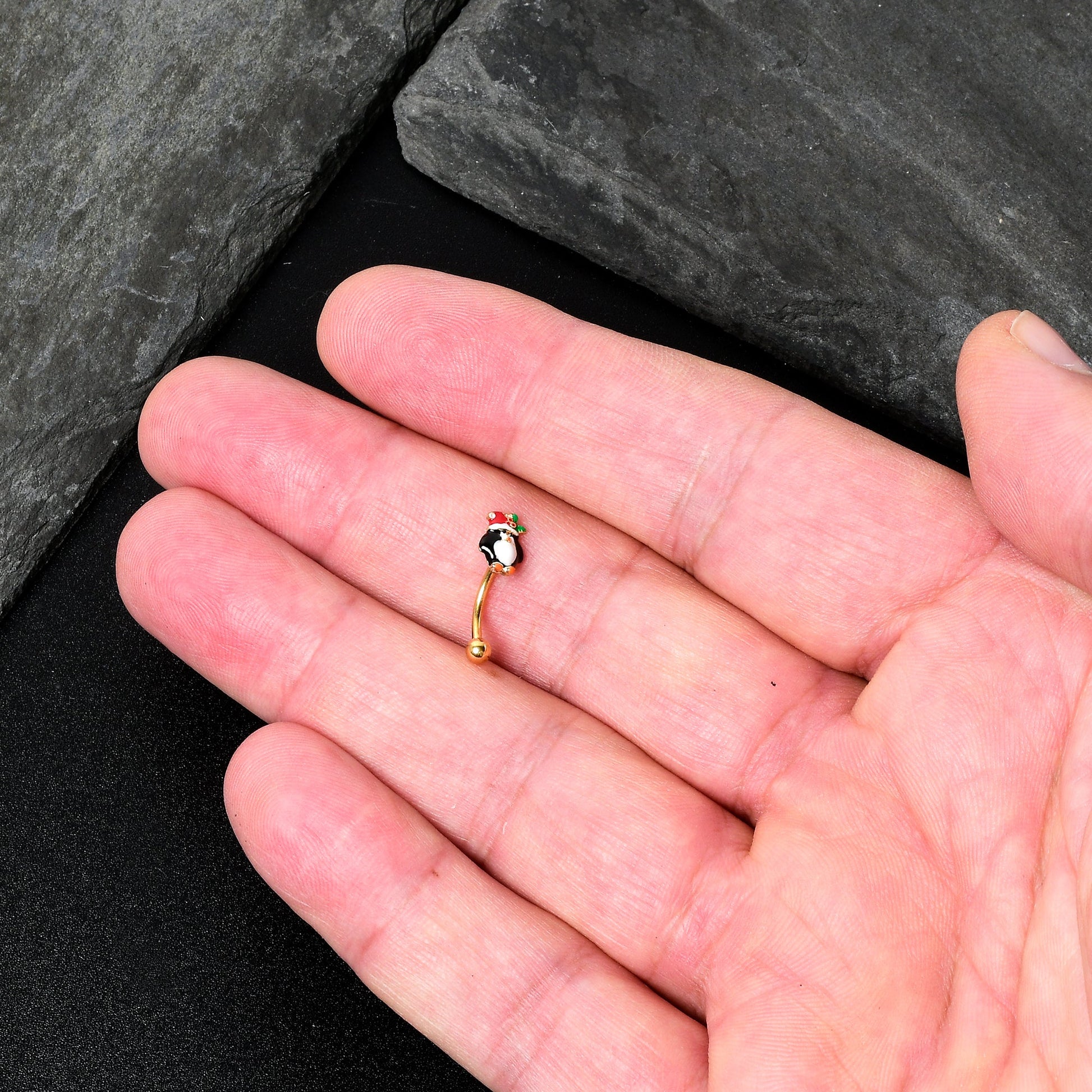 16 Gauge 5/16 Gold Tone Holly Hat Penguin Holiday Curved Eyebrow Ring
