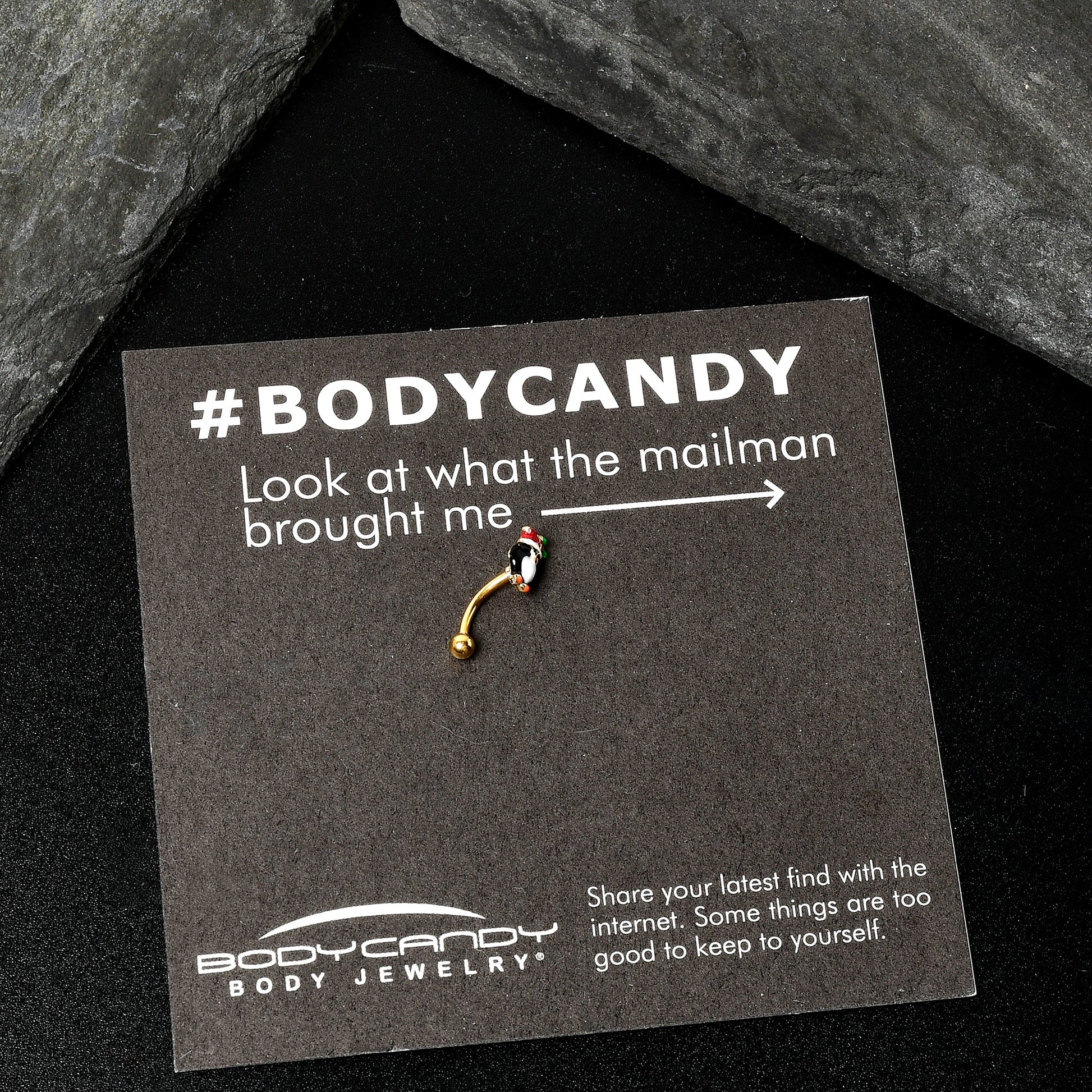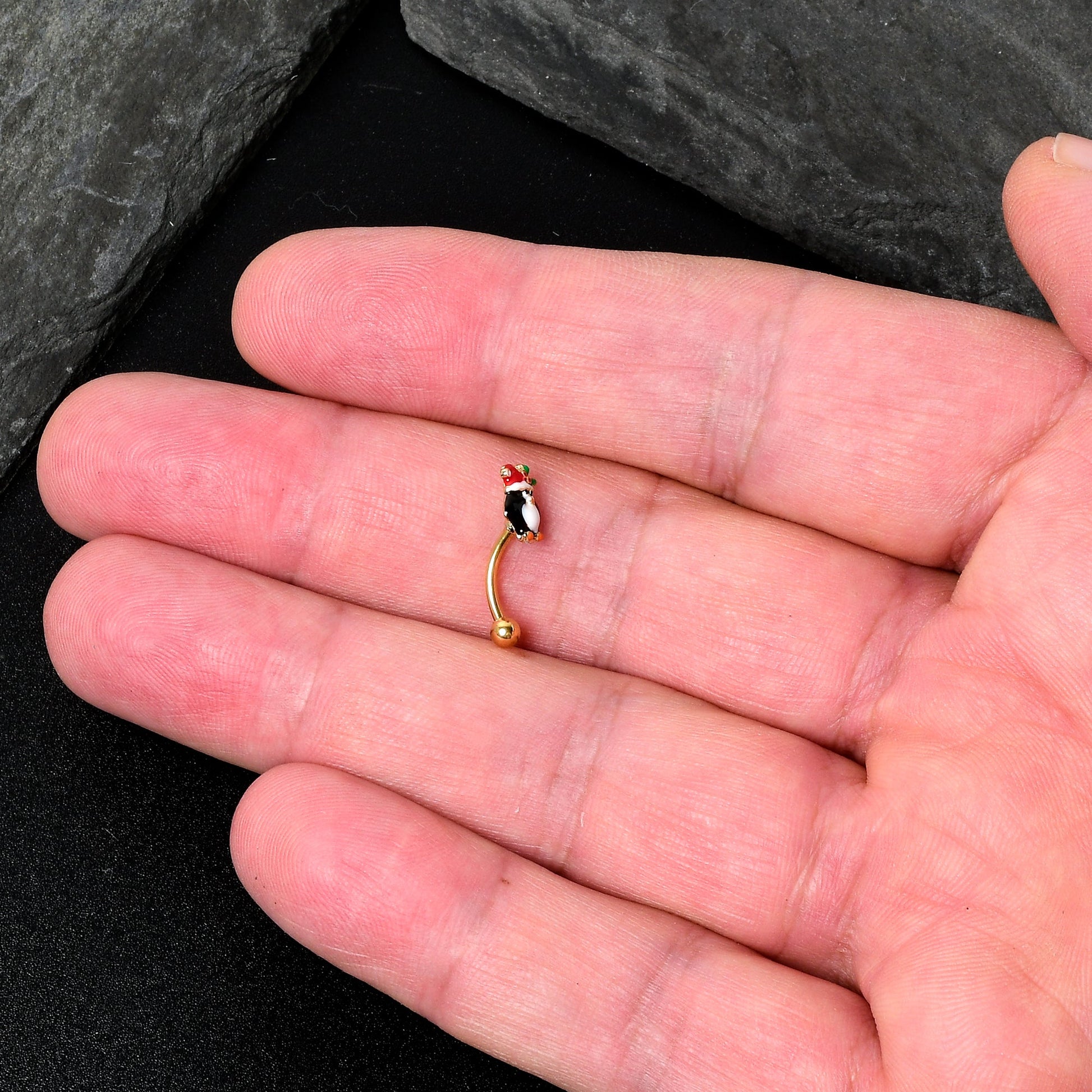 16G 5/16 Gold Tone Holly Hat Penguin Holiday Curved Eyebrow Ring