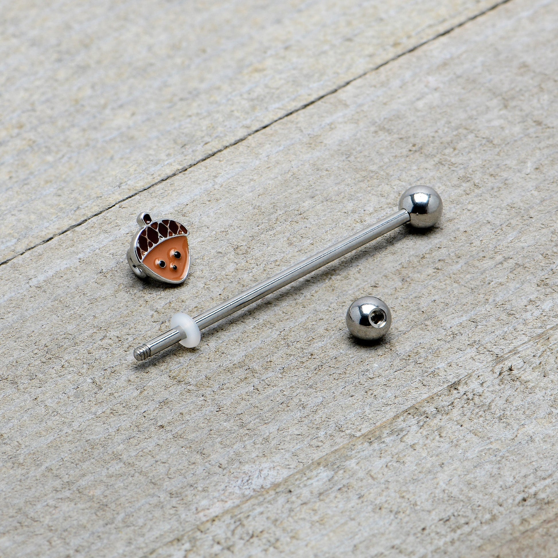 14 Gauge Autumn Acorn Face Brown Fall Industrial Barbell 38mm