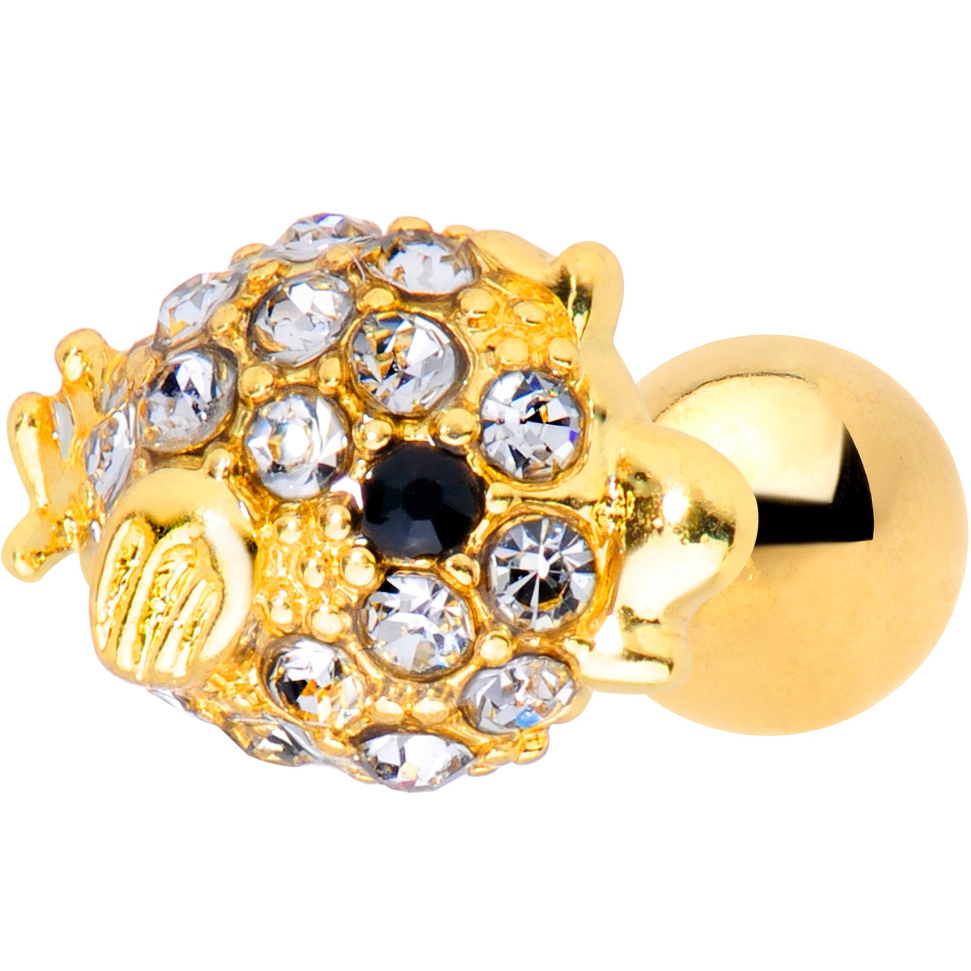16G 1/4 Clear Gem Gold Tone Fish Cartilage Tragus Earring