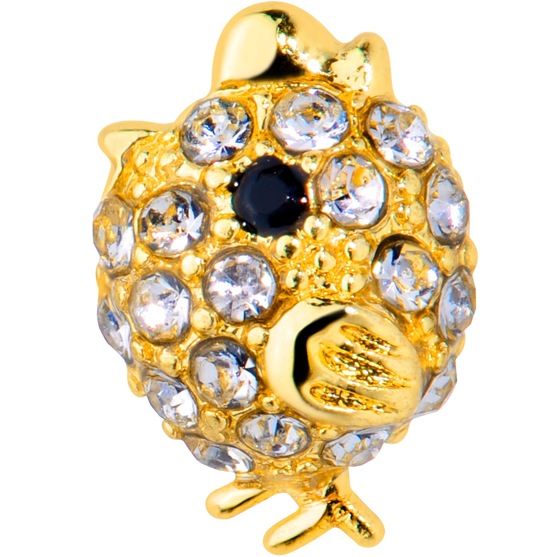 16 Gauge 1/4 Clear Gem Gold Tone Fish Cartilage Tragus Earring