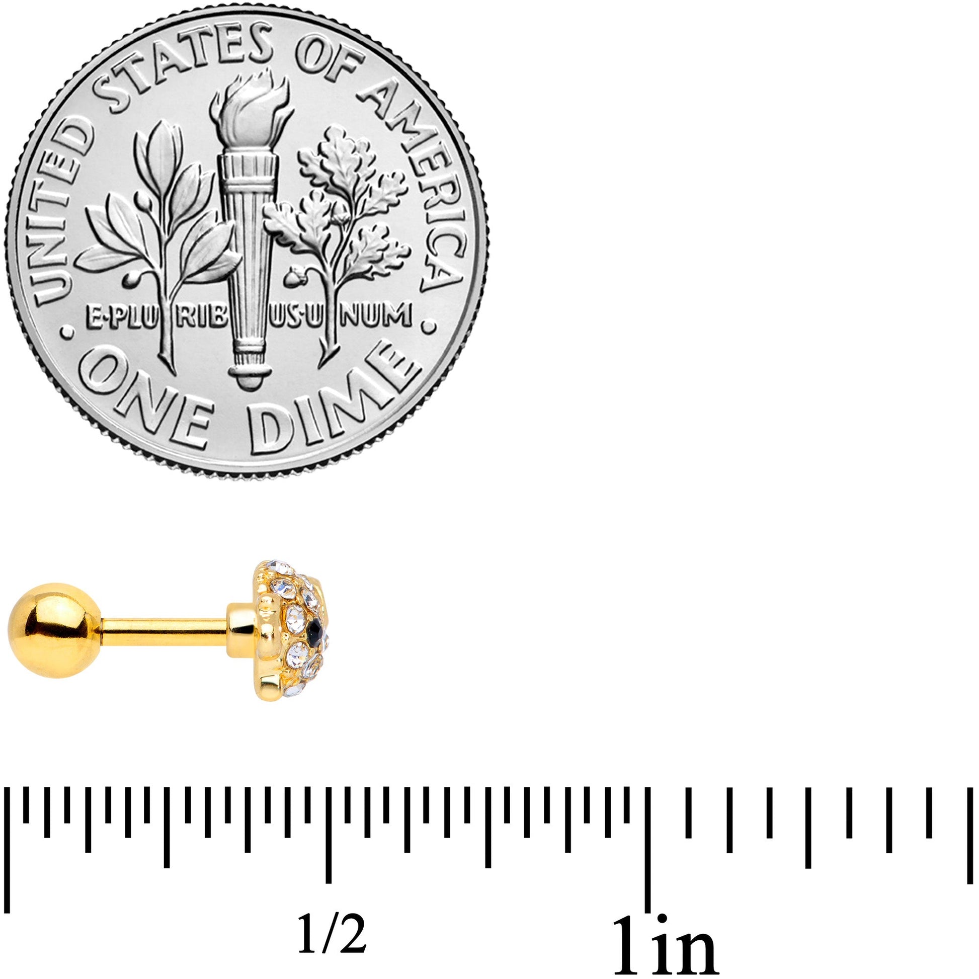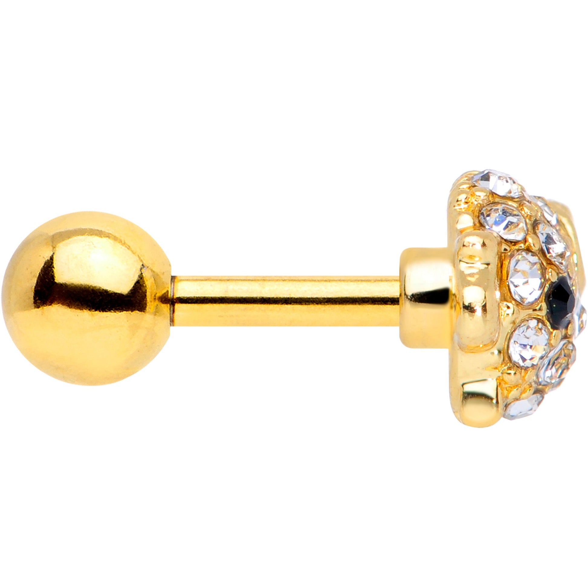 You won't need to fish for compliments, plenty of them will find you with this 16 gauge cartilage stud! it's made with a 6mm gold tone PVD over 316L surgical grade stainless steel straight barbell with a 4mm ball end and features a round fish charm paved with clear gems and a black gem eye. This fish body jewelry can swim in multiple piercings including your tragus, helix, and some conch piercings. There may be plenty of fish in the sea but none of them are as cute as this nautical cartilage jewelry!