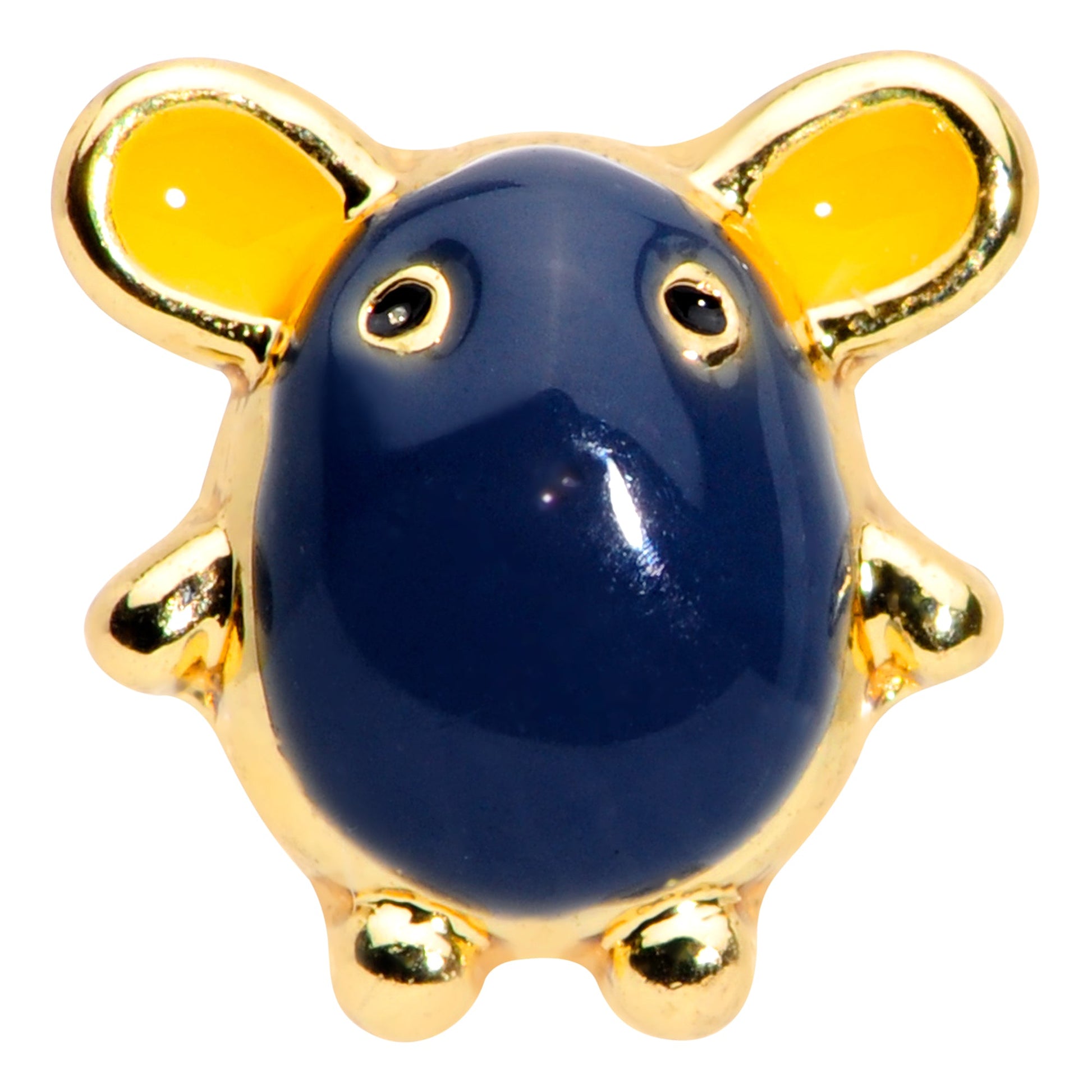 If your cartilage jewelry is starting to look a little ratty, get out of the corner and into the spotlight with this 16 gauge tragus stud! It's made with a 6mm gold tone PVD over 316L surgical grade stainless steel straight barbell with a 4mm ball end. It features an absolutely adorable black mouse charm. And you can house this mouse in multiple piercings including tragus, helix, and some conch piercings. Don't settle for mousy cartilage jewelry when you can be rodent rock star with this captivating cartilage jewelry!