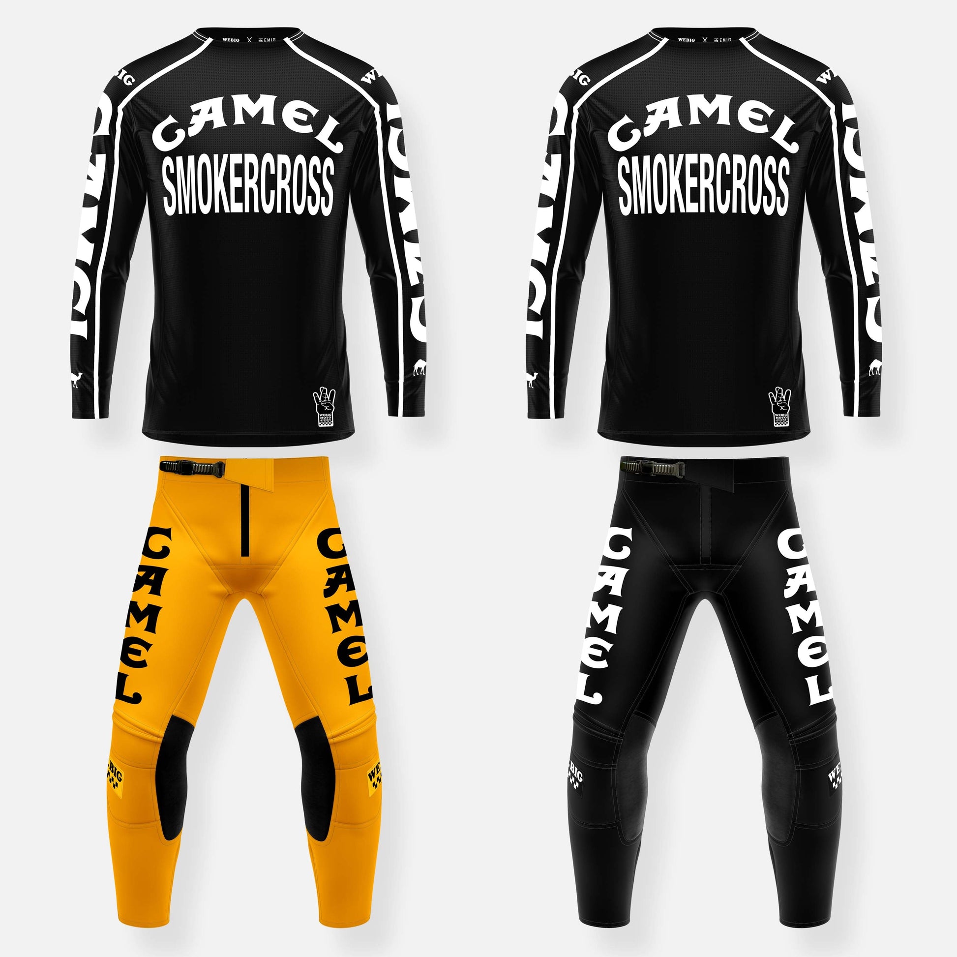 Wrangle yur sexy ass smack dab into one of our new Camel Smokercross Race Jersey. It was designed, and tested in direct collaboration with Jeff Emig. With hundreds of test rides and design tweaks.....we are so proud to deliver to you a Moto Jersey that is at the pinnacle of greatness. If you want the full factory setup....you can run this black jersey with either the black or the yellow Camel Smokercross Race Pant.