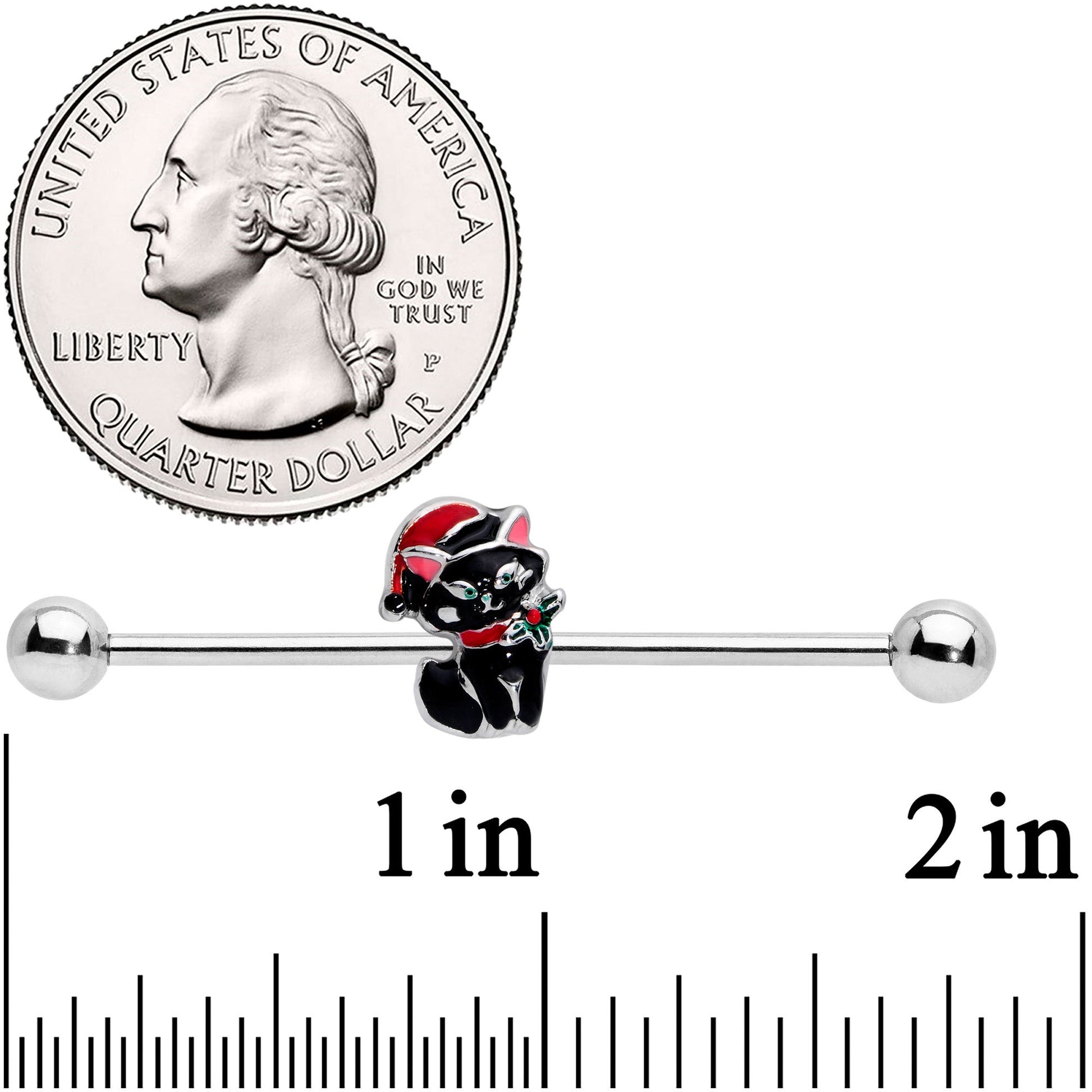 14 Gauge Black Cat Santa Hat Christmas Industrial Barbell 38mm