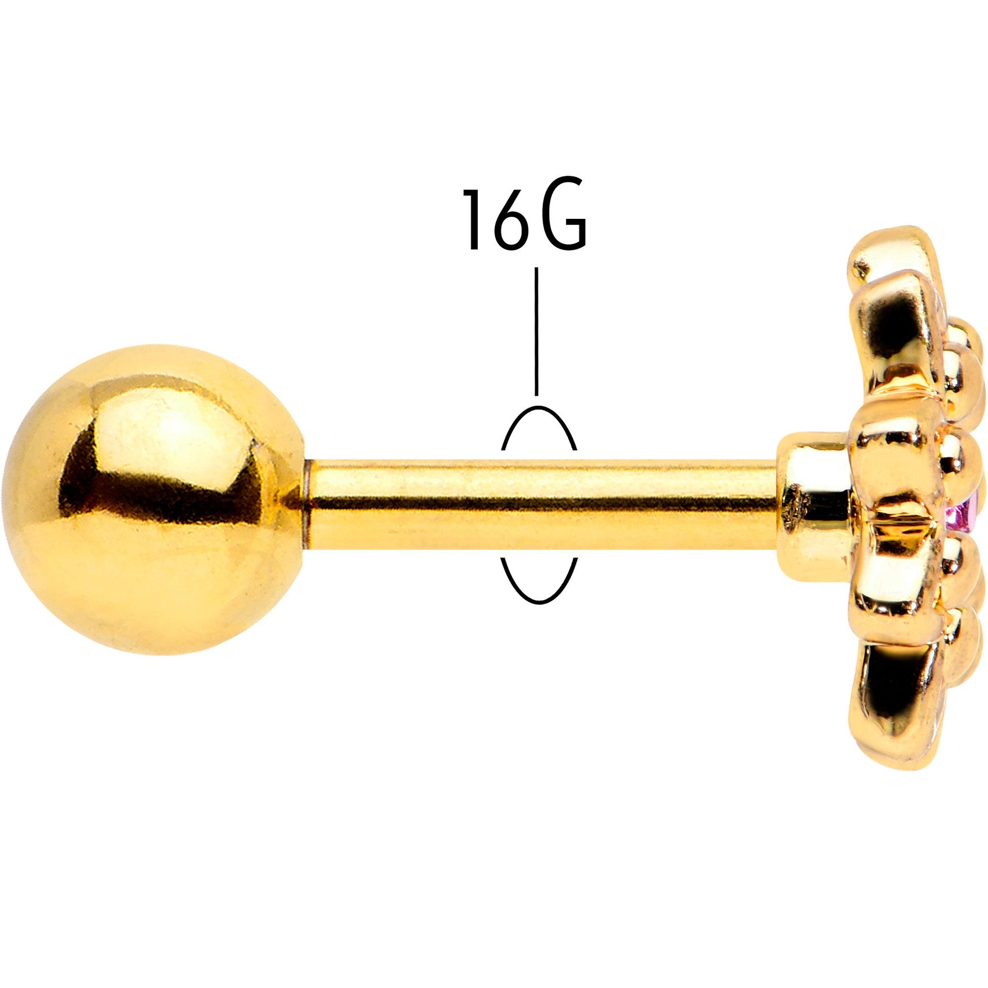 16 Gauge 1/4 Pink Gem Gold Tone Starry Flower Cartilage Tragus Earring