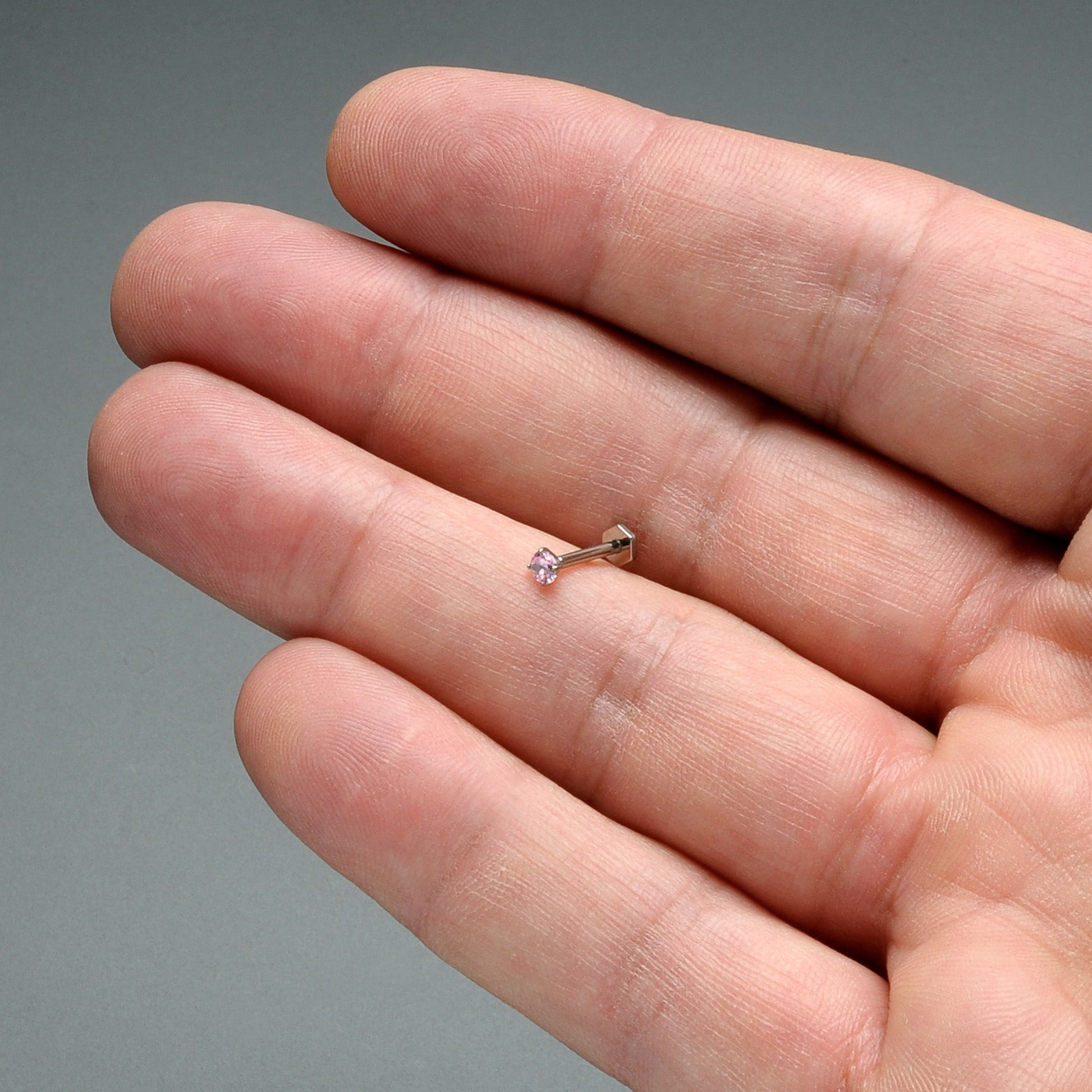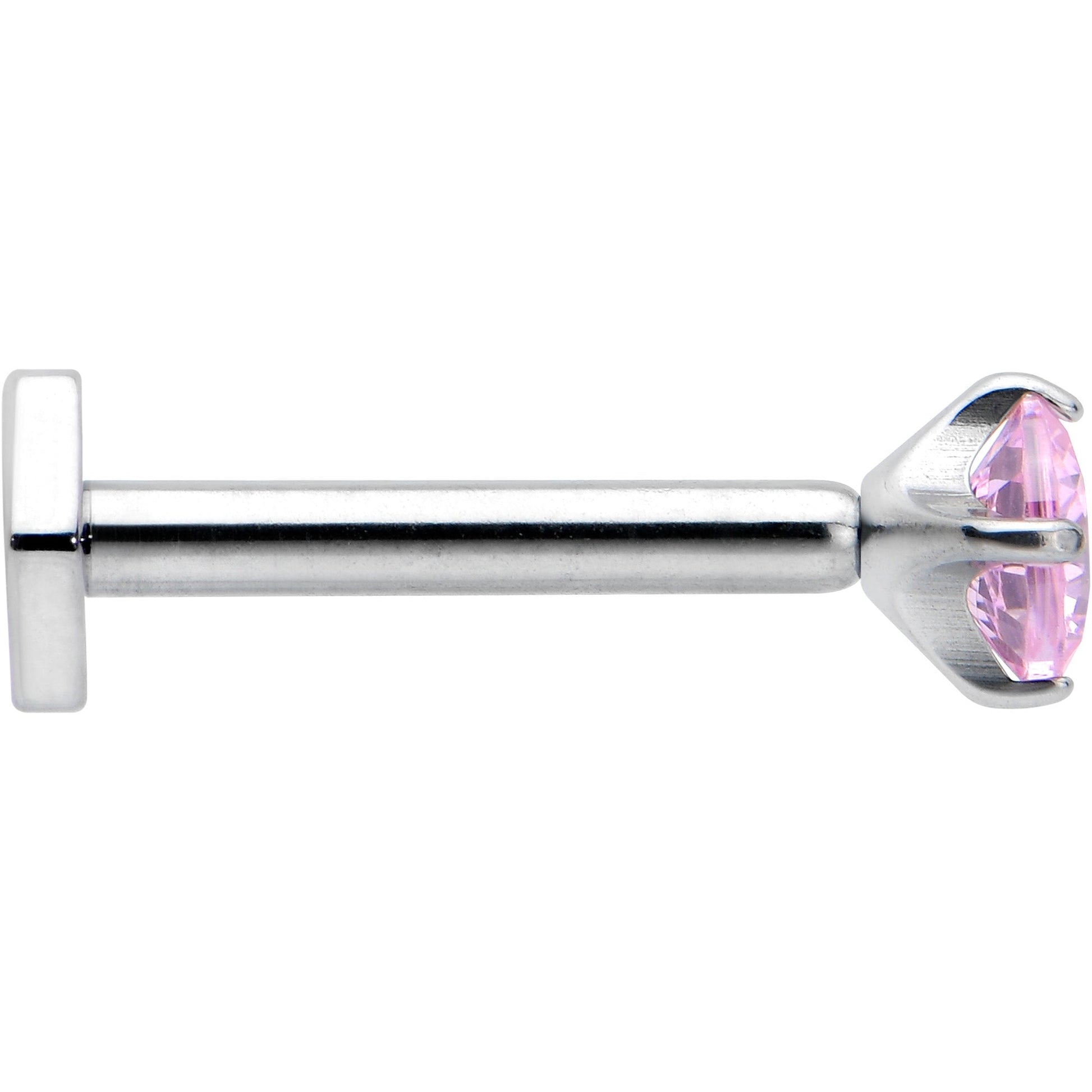 16 Gauge 5/16 Pink CZ Gem ASTM F-136 Titanium Hex End Labret Tragus