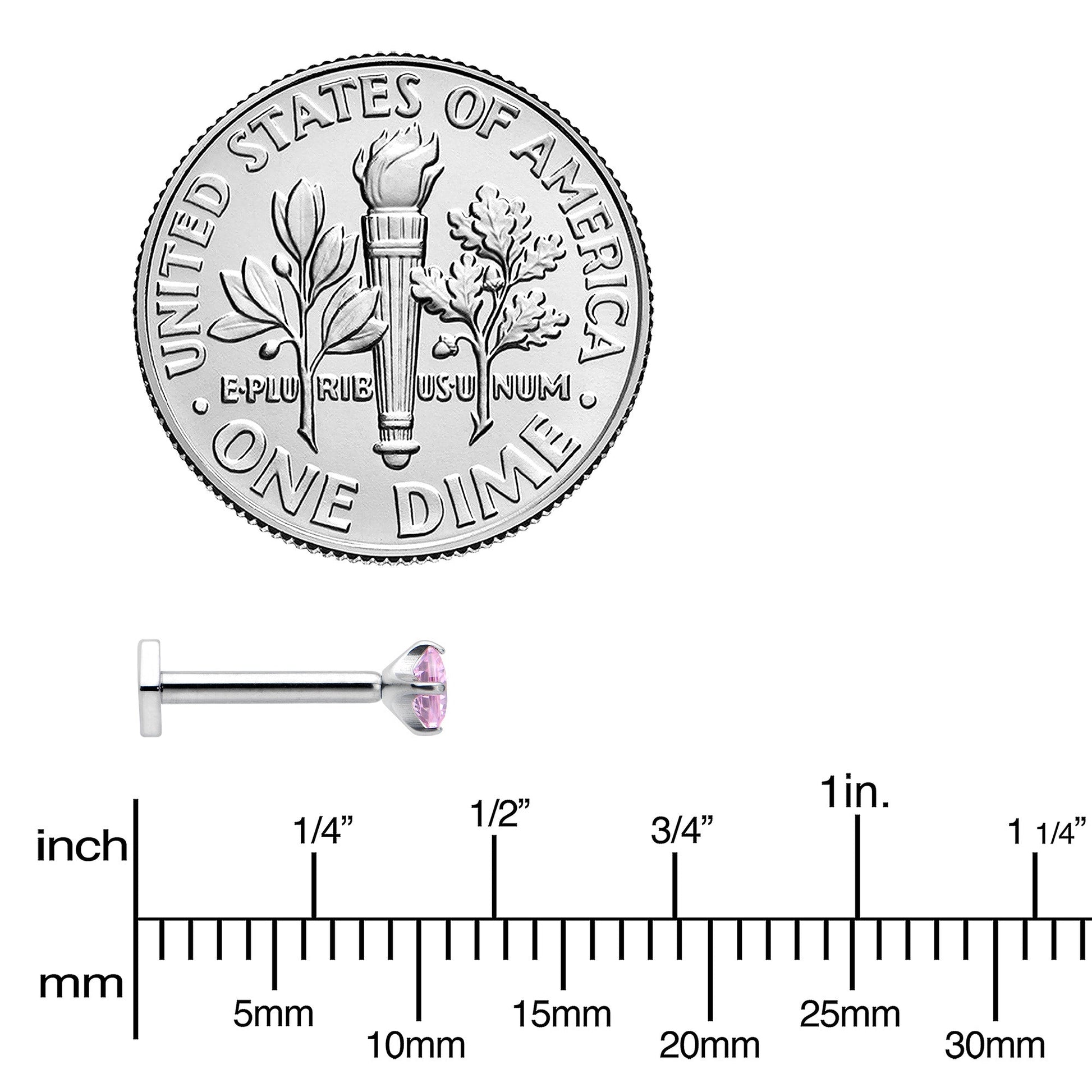 Your cartilage piercings will have twice the style with this 16 gauge lip ring! It's made with an 8mm ASTM F-136 titanium straight post. The front end features a pink cubic zirconia gem in a pronged setting and a threadless design that makes insertion and removal a snap! The back end features a hexagon shape, for a charming change from the standard disc shape. You can even rock this jewelry in multiple piercings including lip, monroe, tragus, helix, and some conch piercings. With such an endearing style and such thoughtful details, this is one cartilage ring you'll never want to remove!