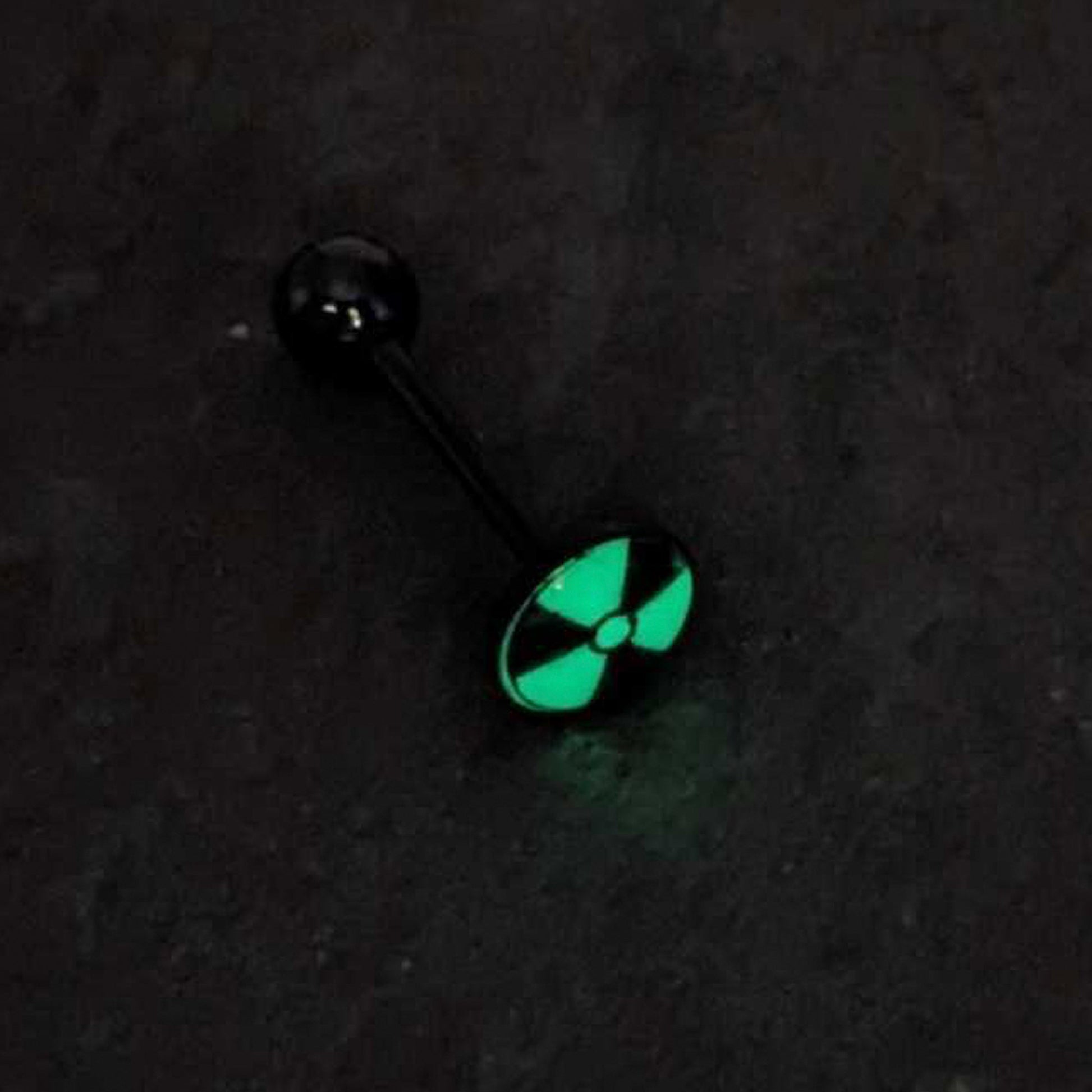 Glow in the Dark Black Anodized Radioactive Barbell Tongue Ring