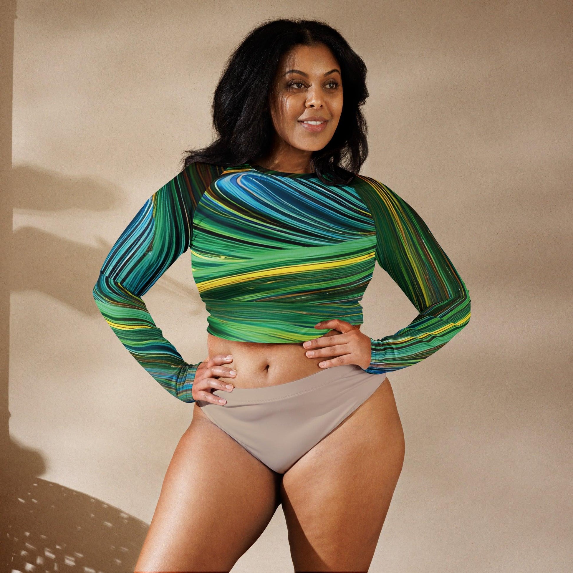 Psychedelic Abstract Long-Sleeve Crop Top for EDM Festivals
