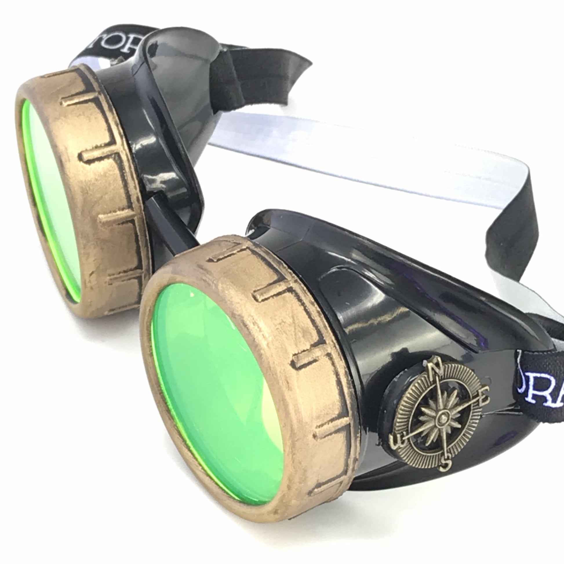 Experience the ultimate concert experience with our Steampunk Aviator Goggles! These goggles not only give you a cool steampunk look, but also enhance your music festival experience with trippy diffraction lenses. Get ready to rock out in style!
