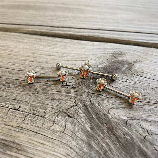 14G White Orb Movie Night Popcorn Industrial Barbell 38mm