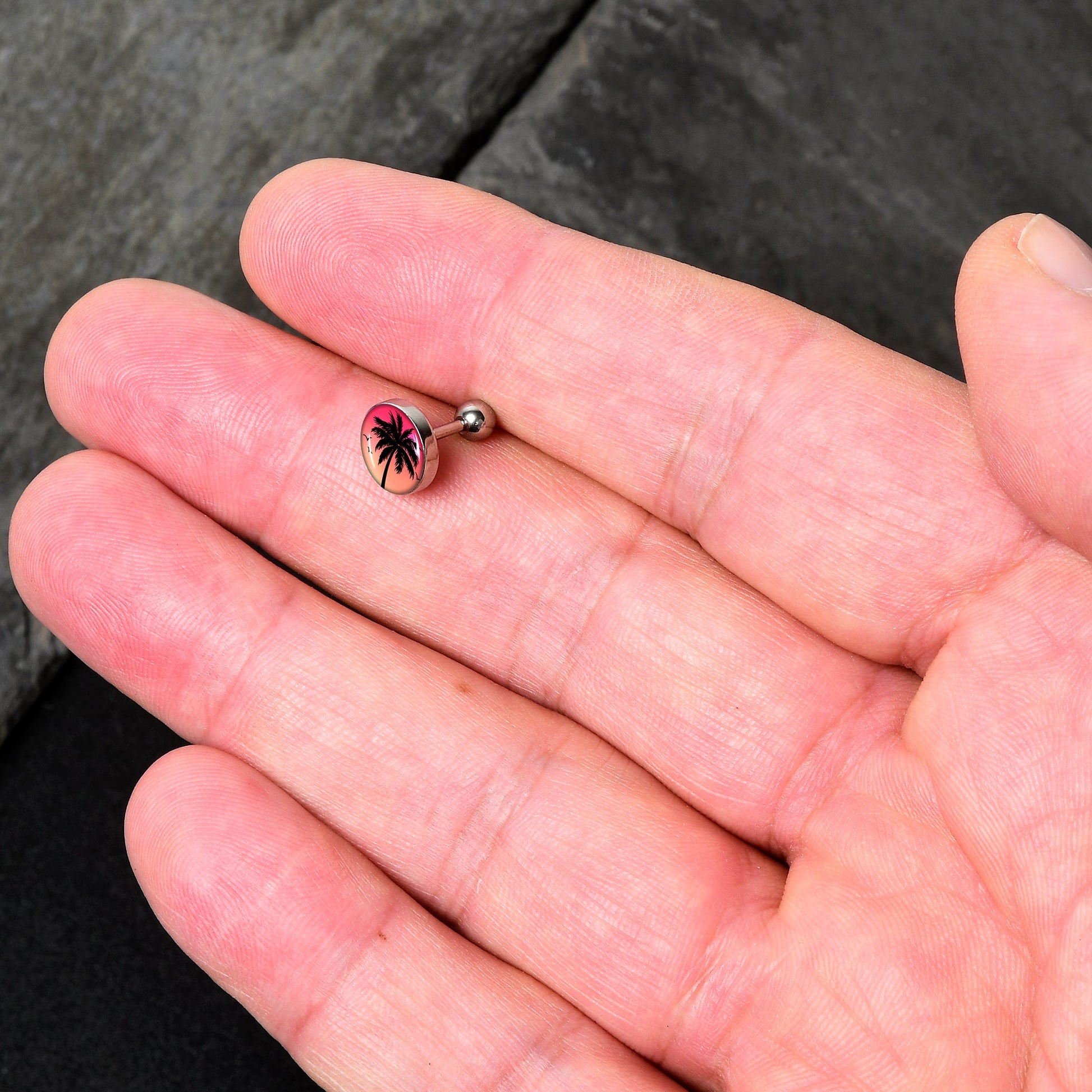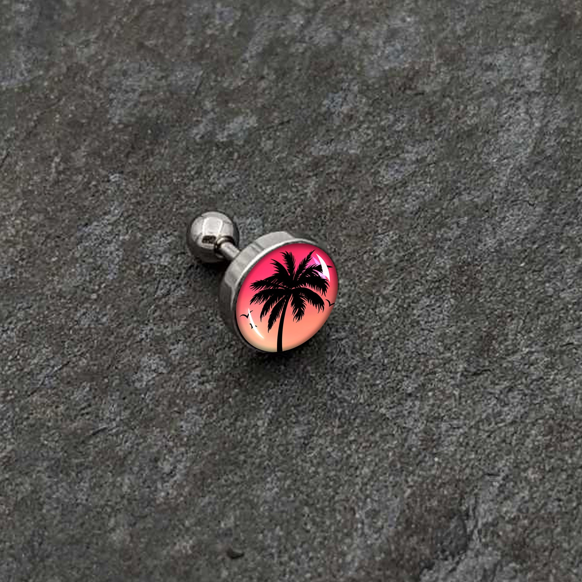 16G 1/4 Red Sunset Palm Tree Cartilage Tragus Earring by Onyx O