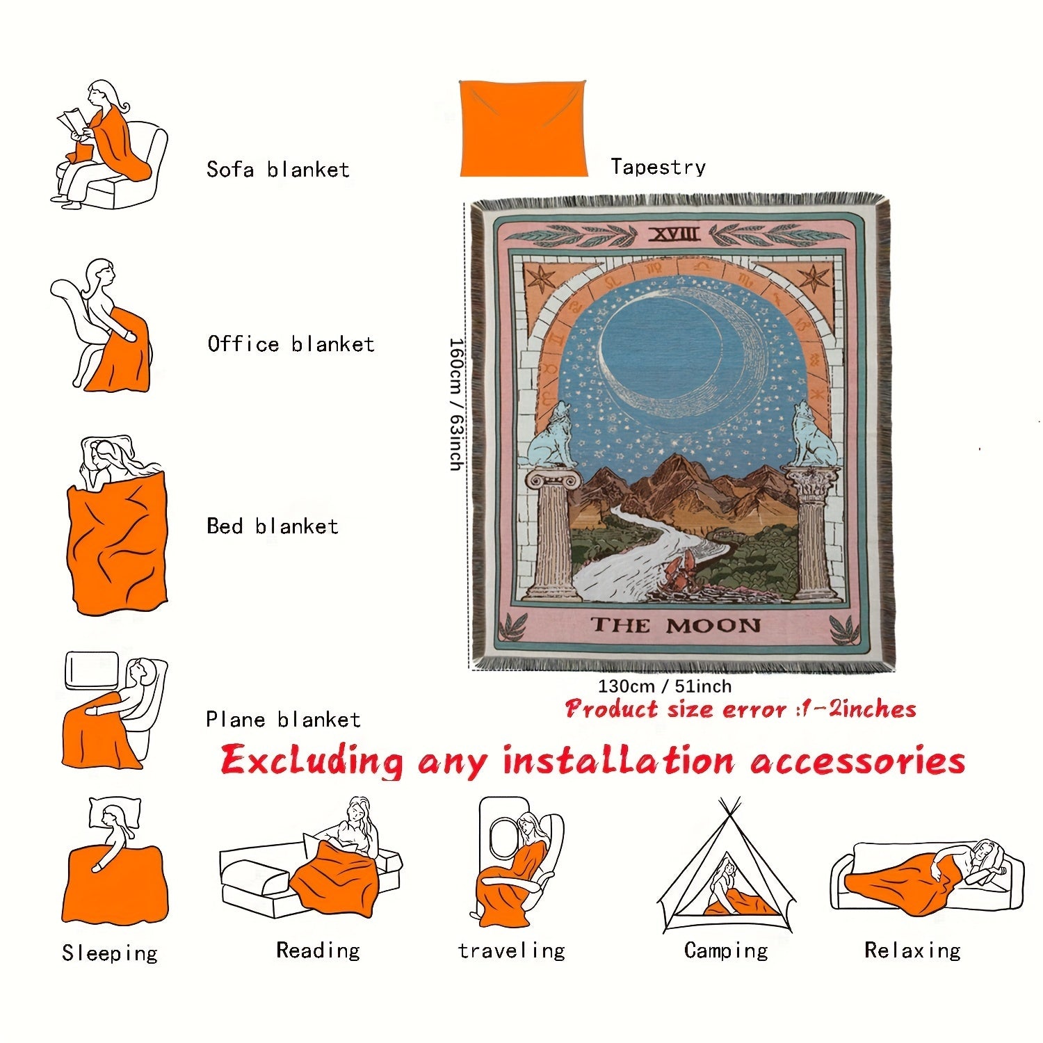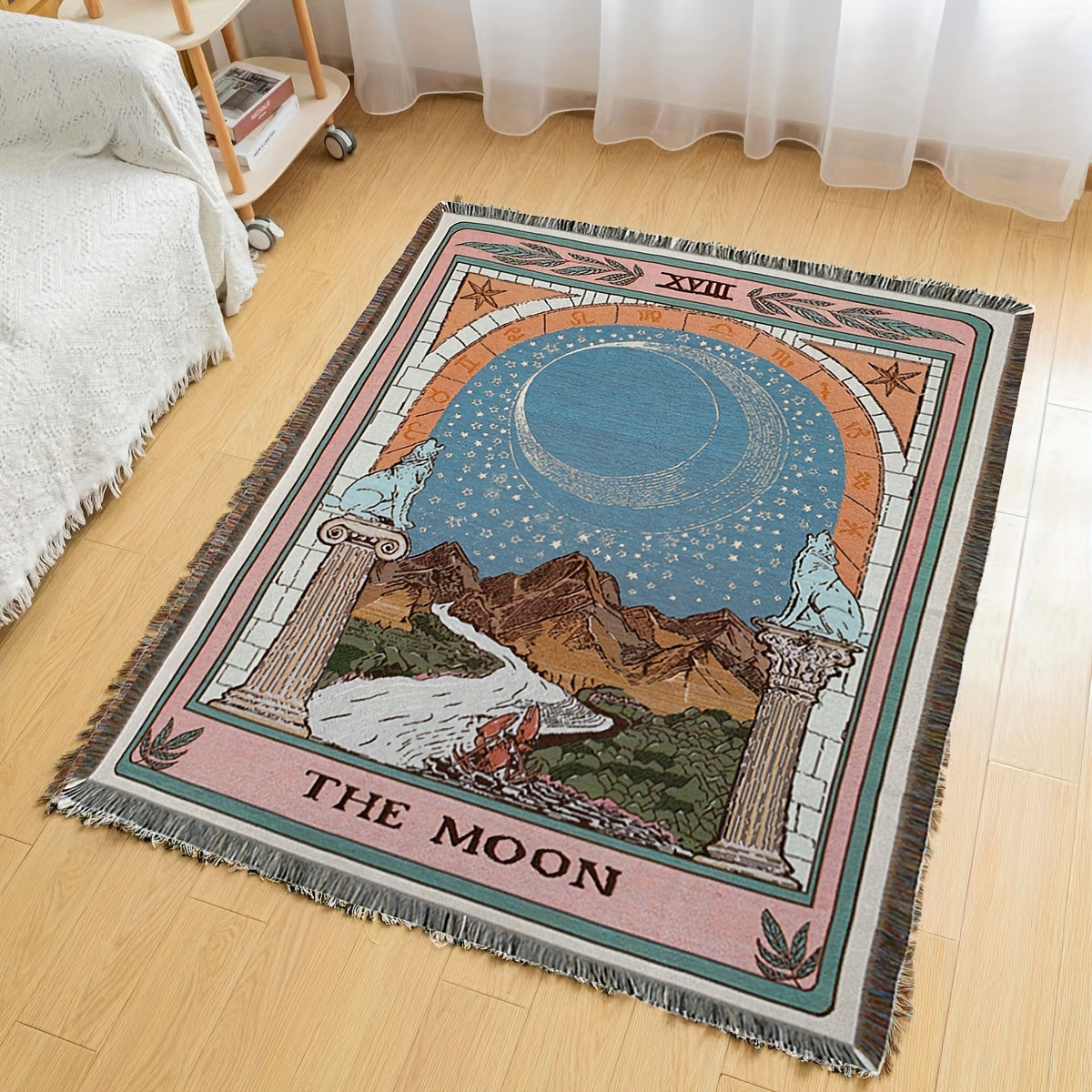 1pc Bohemian Knitted Tassel Blanket - Polyester Blend, Machine Washable, Square, Stain Resistant, Lightweight, Versatile for Indoor, Outdoor, Camping - The Moon Design Rug