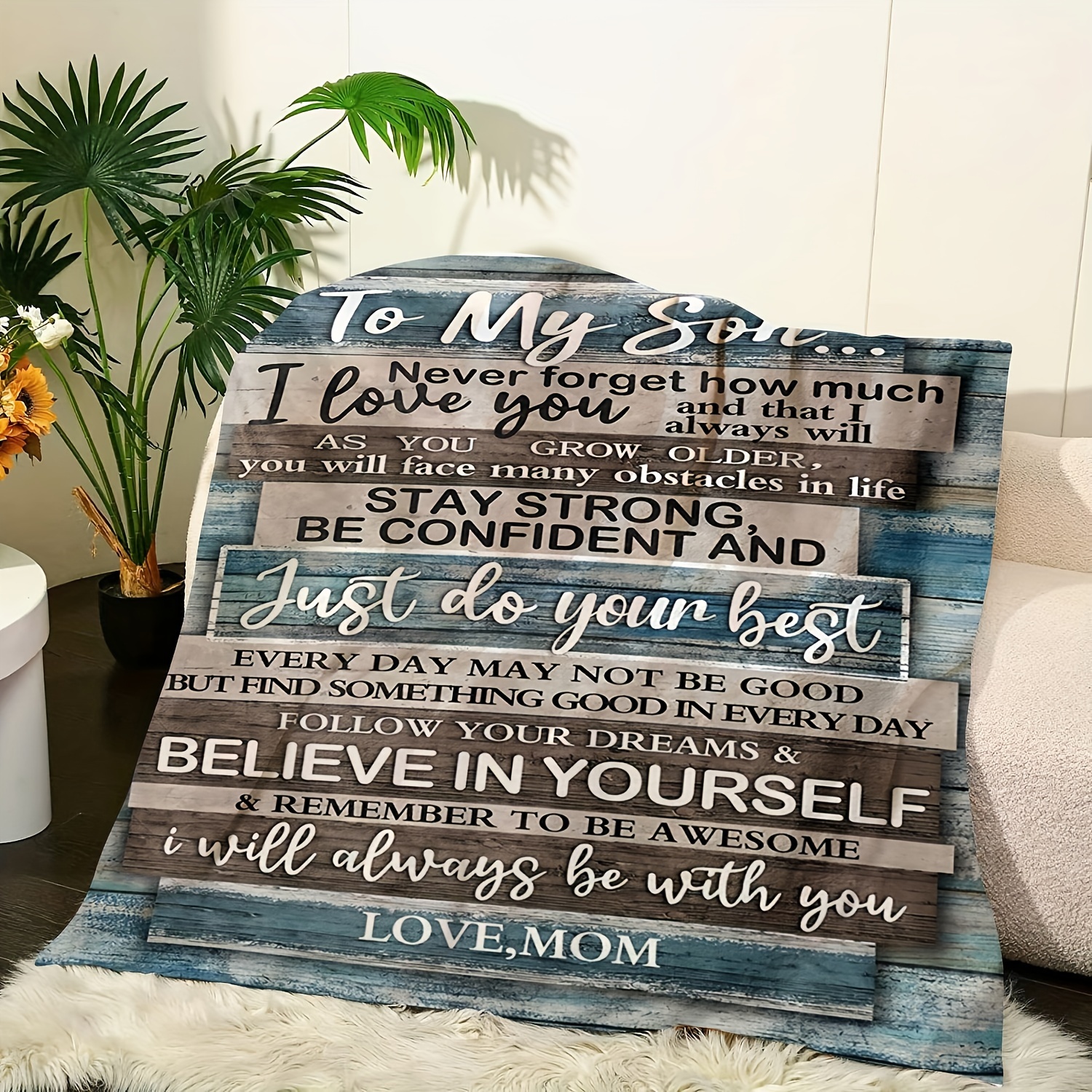 1pc Soft Flannel Blanket, To My Son From Mom Warm Cozy Throw Blanket For Couch Bed Sofa