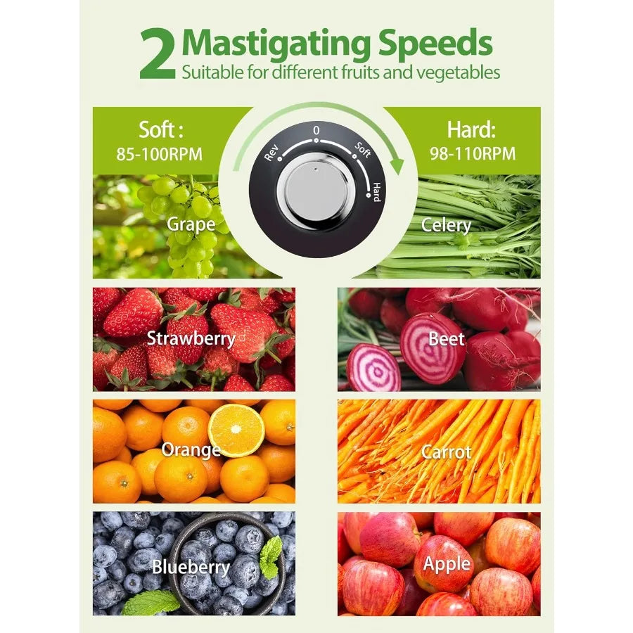 【Juice & Pulp Separation and Reverse Function】 Perfectly separates the pomace from the juice,provide purest juice and vitamins for you and your family! Aeitto Cold Press Juicer provides you with a safer and quieter juice extraction environment.