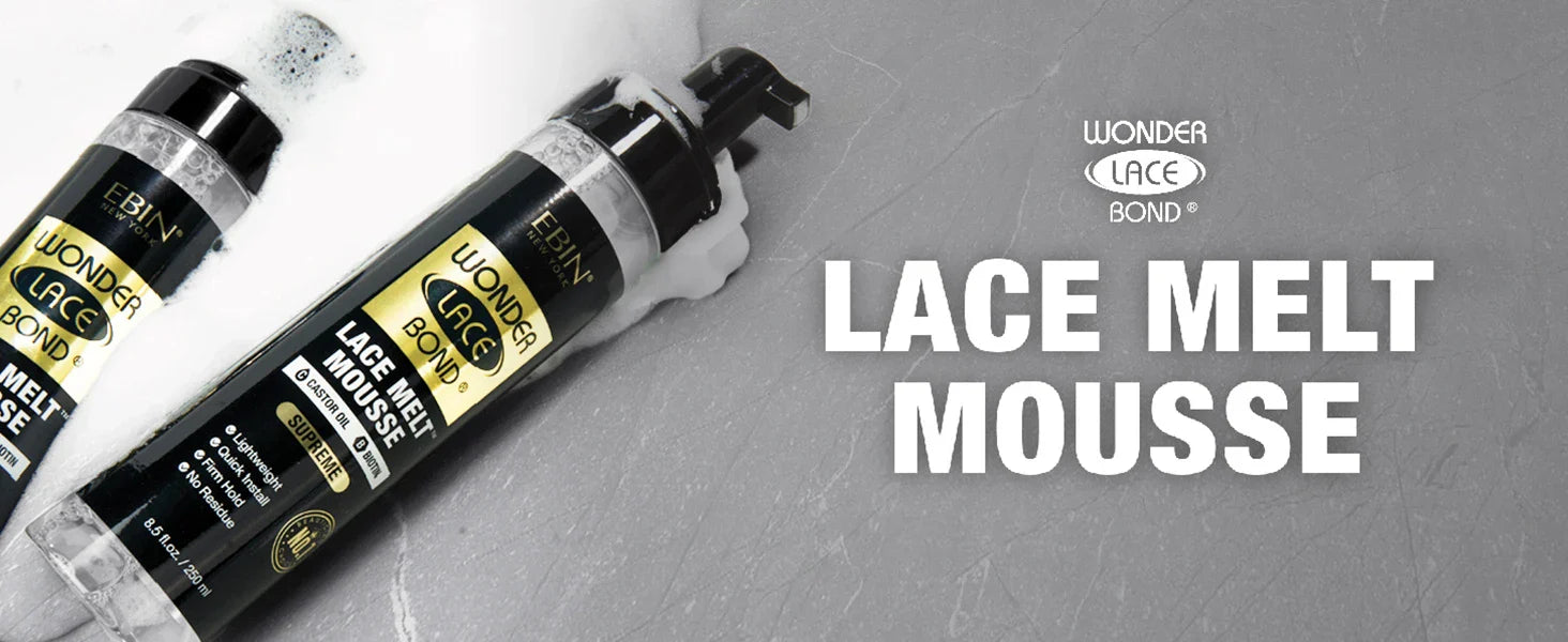 MOUSSE Wonder Lace Bond Lace Melt Mousse is designed to securely bond your wig lace to your skin to achieve a seamless and undetectable wig installation, boosting your confidence and style.
