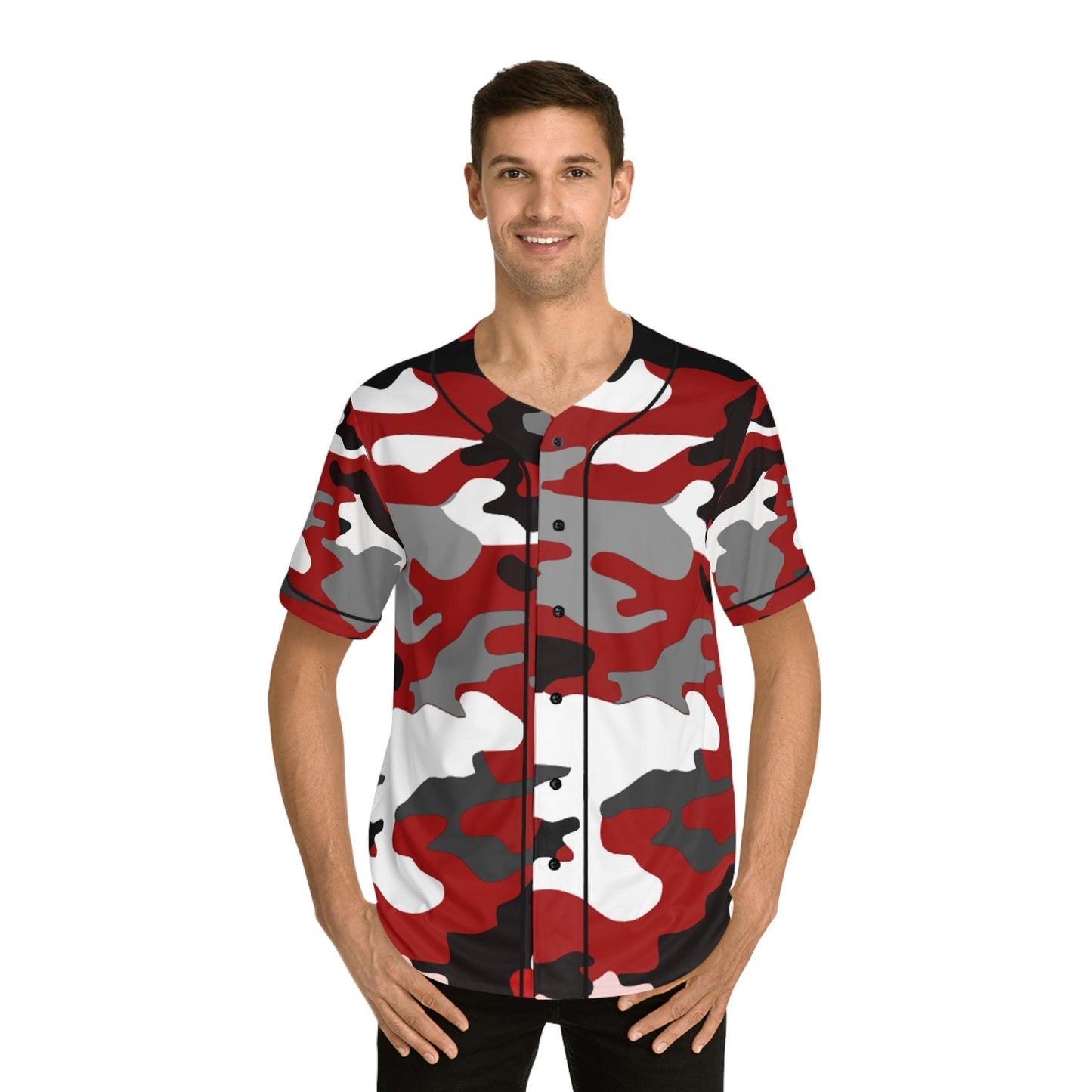 Red Black Grey White Camouflage Men's Baseball Jersey