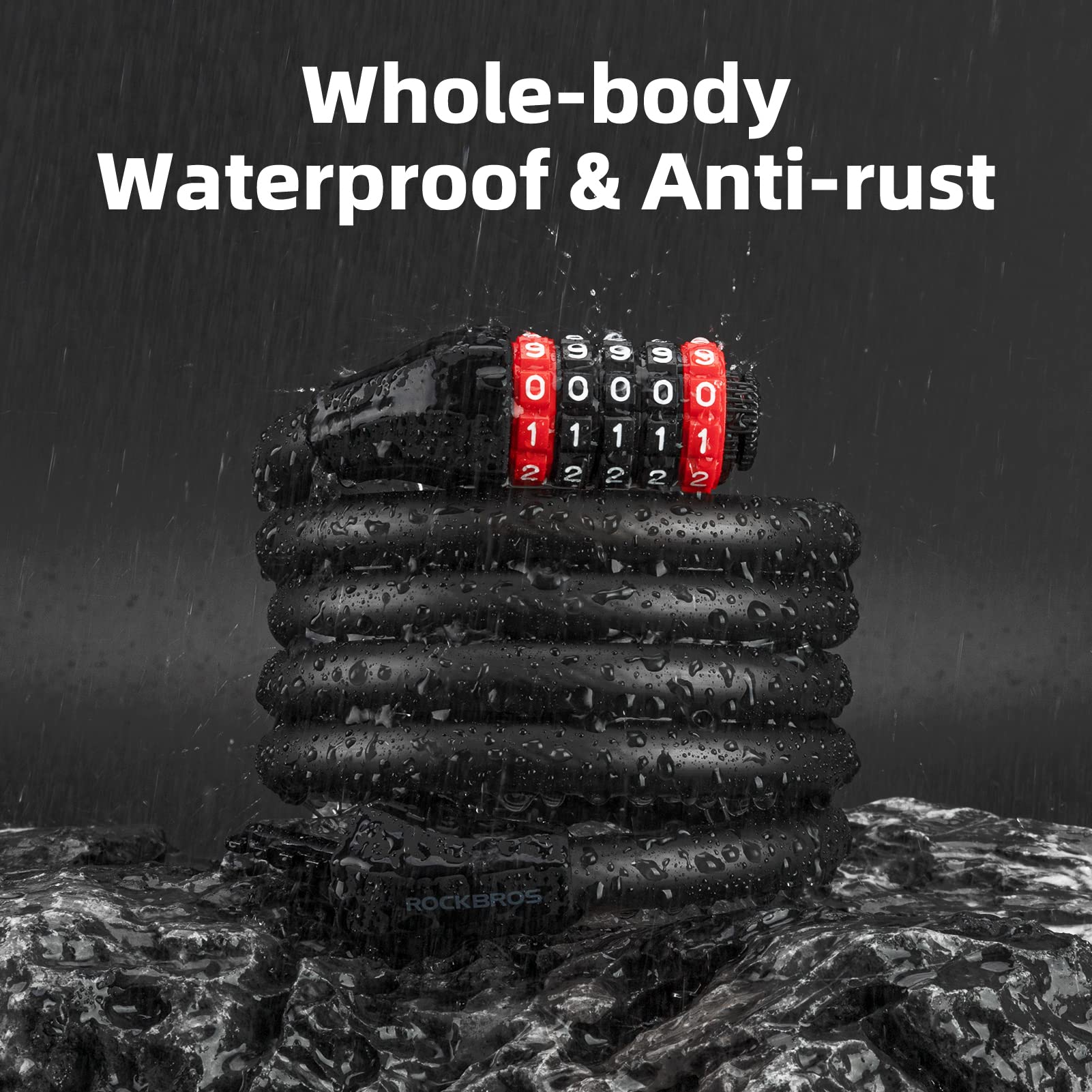 ROCKBROS 5-Digit Bike Lock Cable 70 Inch Combination Lock (5.9ft)