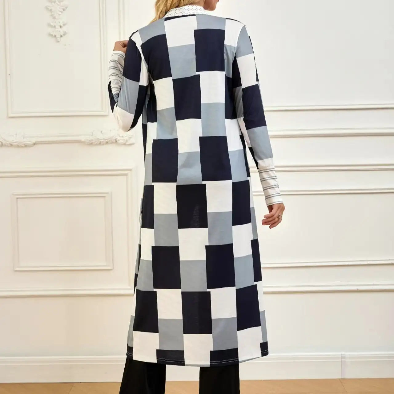 Women's Jacket Color Block Long Outer Sleeve Cardigan Casual Coat Open Front Coat Black