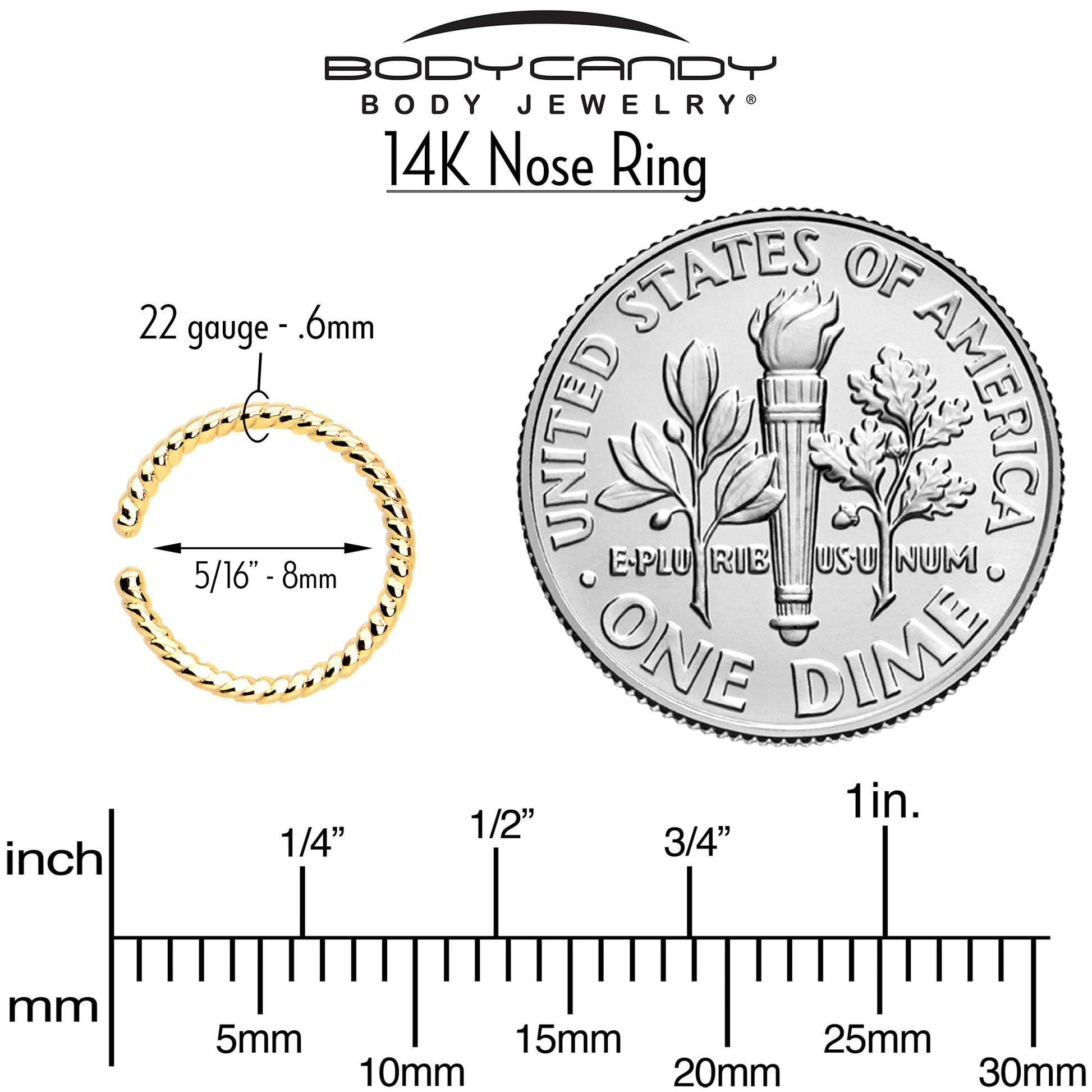 Want to show off your high-fashion style in every aspect of your look? Then this 20 gauge solid 14k yellow gold nose hoop is exactly what you need for a pierced look you can be proud of. It features a coil effect with lightly textured detail for classic style. Bendable nose hoops are easy to wear and provide a classic look with minimalist style for suitability for countless looks. Simply open by gently pushing the wire in opposite directions to maintain the shape. Then insert the opening of the 8mm diameter hoop through the nostril and twist and turn carefully through your piercing and push ends gently back together. Ta-da! Solid gold style for you and your nose piercing.