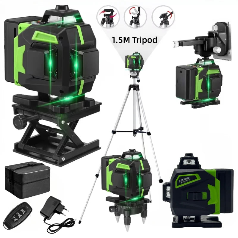 XMSJ 360° ProGrid 16-Line Self-Leveling Green Beam Laser Level – Precision Construction Series w/ Multi-Tripod Options