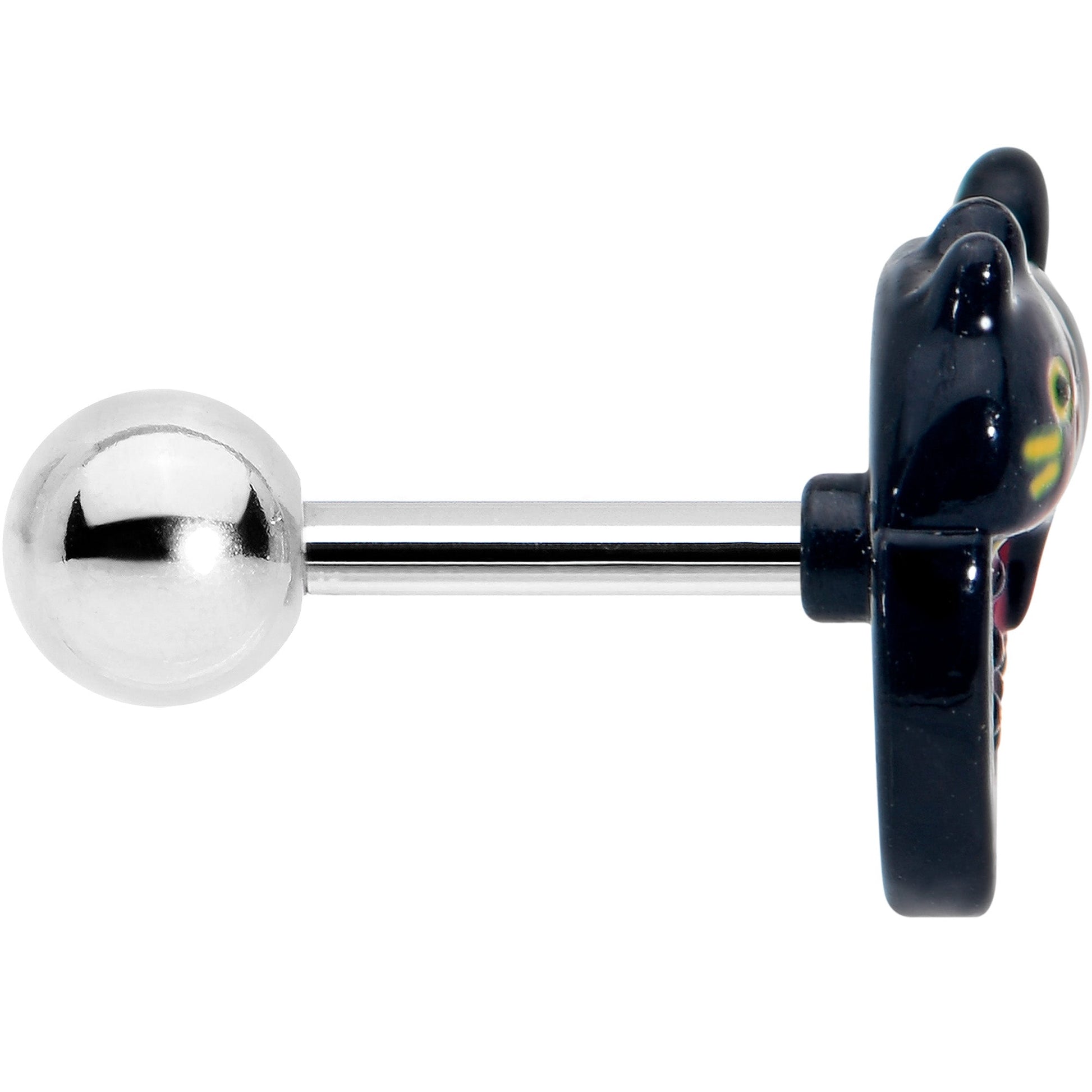 Show your love for watermelon like the peaceful cat on this 16 gauge tragus stud. It's made with a 6mm durable 316L surgical grade stainless steel straight barbell with a 4mm ball end. It features a green and red watermelon charm with black seed detailing. Lounging on top of the watermelon is a black cat with yellow features and a serene expression as though dreaming of something lovely. You can even rock it in multiple piercings including tragus, helix and some conch piercings. Start a fashion revolution with the peaceful watermelon kitty on this gorgeous and inspiring cartilage piercing jewelry.