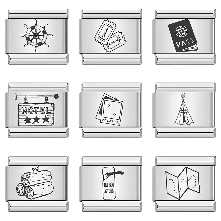 1pc New Designer Exploration Hotel Map Tent Charm Links Fit 9mm Bracelet Stainless Steel Jewelry DIY Making Bangle