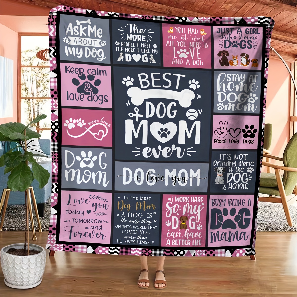 1pc The Best Dog Mom Blanket Splicing Pattern Soft Blanket Flannel Blanket For Sofa Bed
