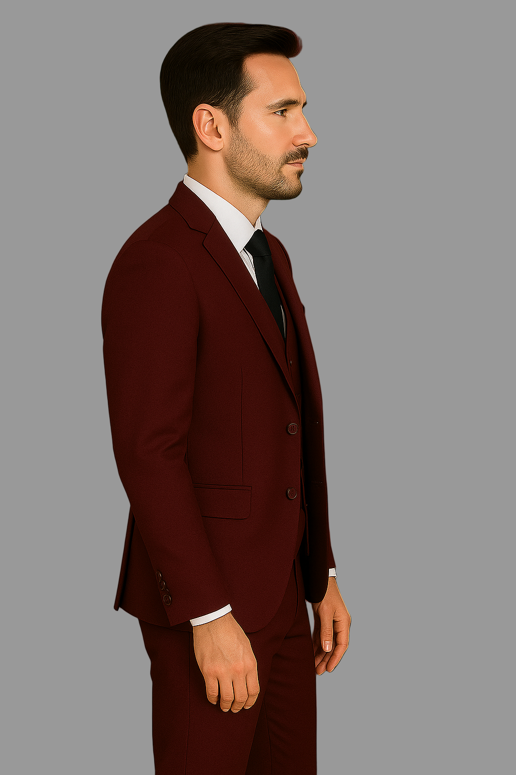 Make a bold yet elegant statement in our Burgundy Three-Piece Suit, designed for the modern man who wants to blend richness with refinement. Cut from a high-quality TR blend, this suit features a comfortable structure with relaxed, stretch-ready armholes—so you move freely through weddings, festive events, or formal dinners. The deep burgundy color adds depth and drama to your look, while the vest sharpens the silhouette. A confident choice for those who believe in wearing personality with polish.