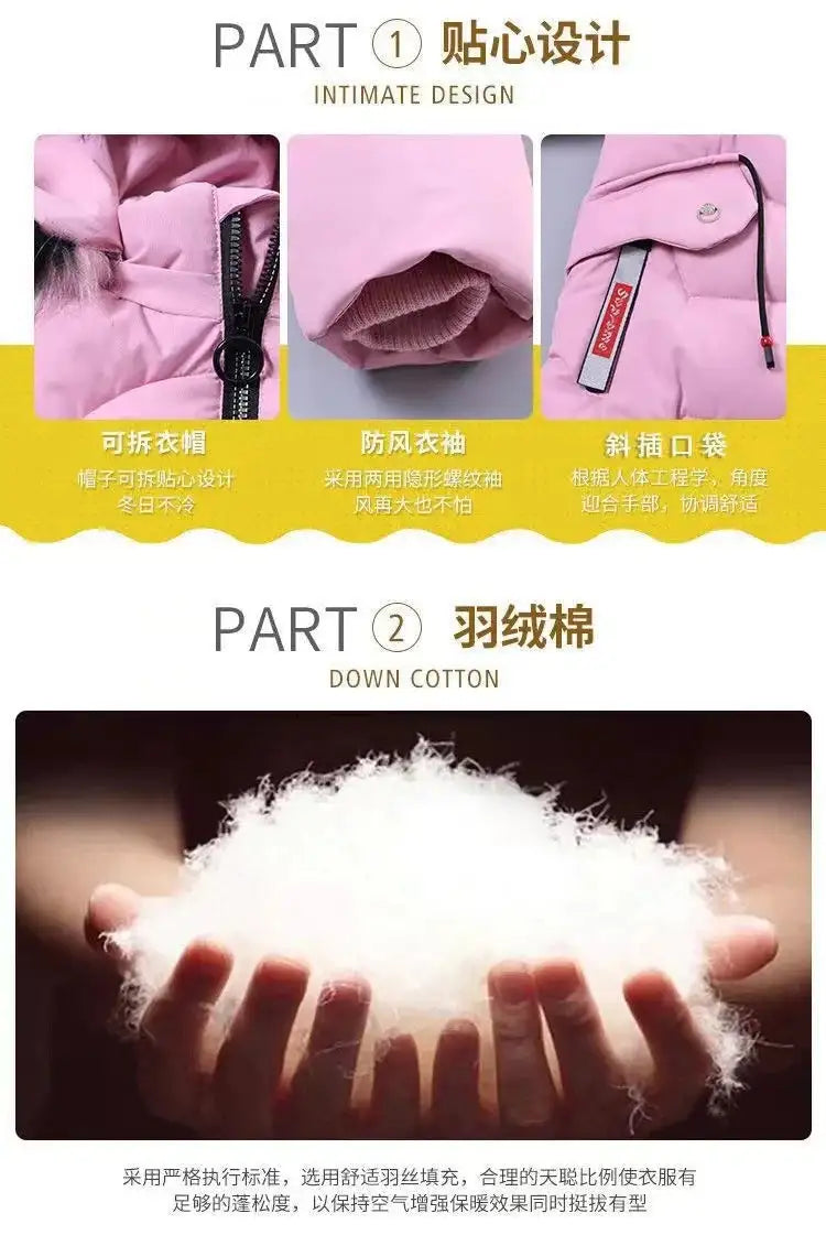4 Color Big Size Winter Keep Warm Long Style Girls Jacket Teenage Thick Heavy Cold-proof Hooded Windbreaker Coat For Kids