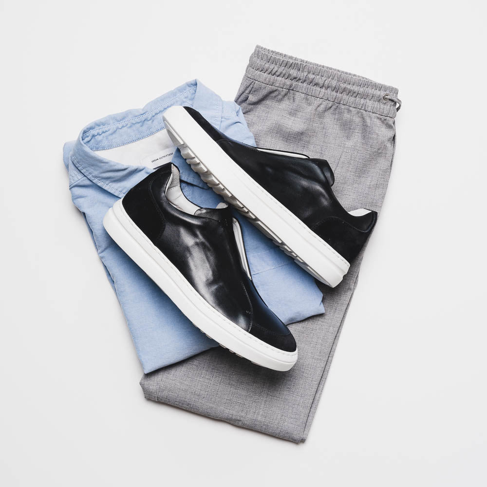 65-219-BLK SPETTACOLARE Italian Glove Baby Calf Sneakers, Black
