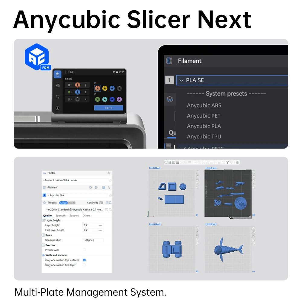 Anycubic Slicer Next is a software based on the Orca open-source platform, tailored for Anycubic 3D printers. lt incorporates refined algorithms developed through multiple iterations to enhance slicing and printing quality.Additionally,it supports local area network mode to ensure privacy and security.