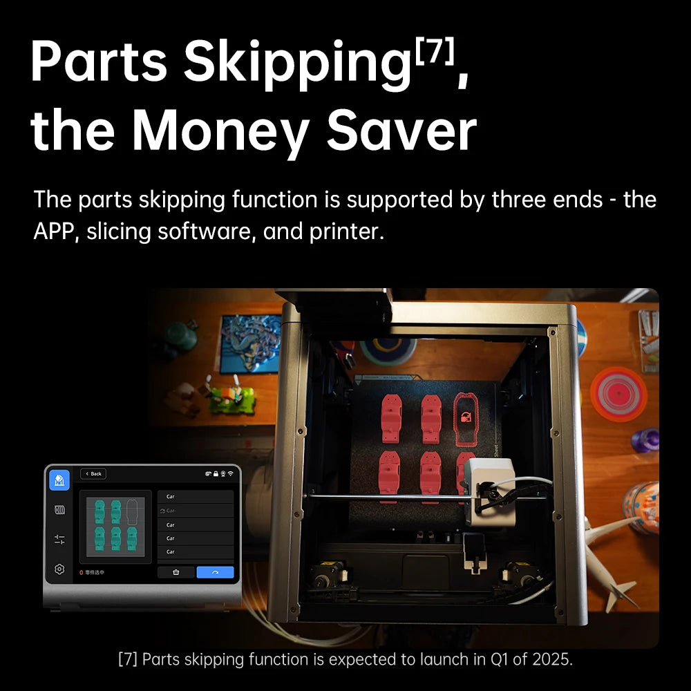 The parts skipping function is supported by three ends - the APP, slicing software, and printer.