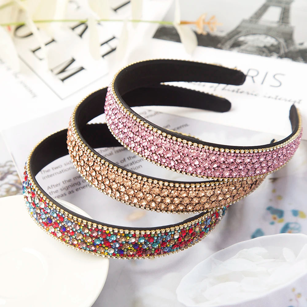 Baroque-style crystal headband with rhinestones, luxury fashion hair hoop with bezel-setting rhinestones, fashionable headband for women with decorative crystals, unisex rhinestone headband for weddings and parties, spring and summer rhinestone hairband, elegant decorative headband for casual and formal looks