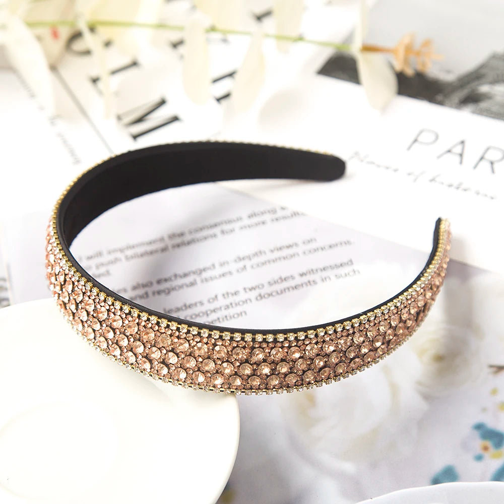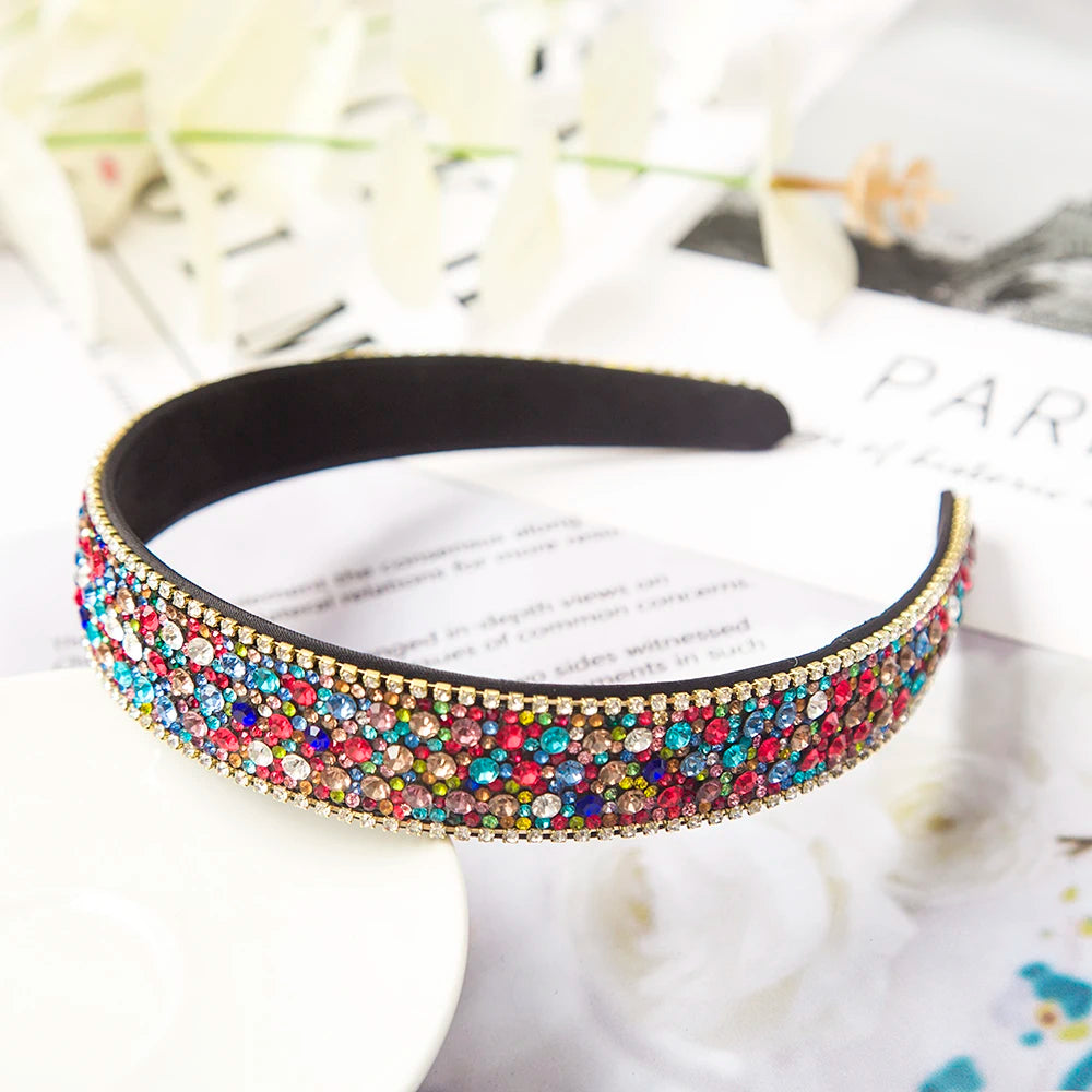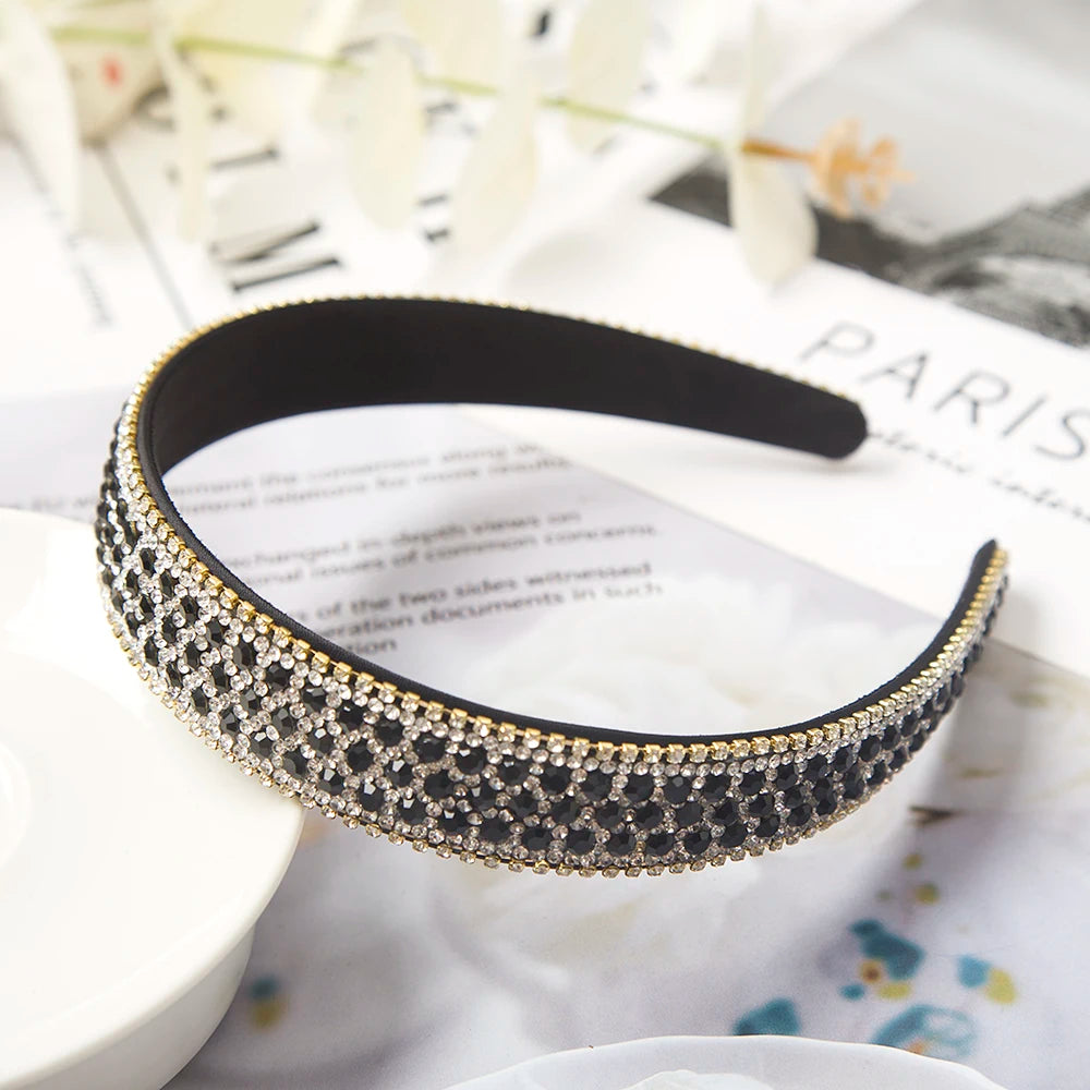 Baroque crystal headband, rhinestone hair hoop, luxury fashion headband, bezel hairband with crystals, stylish hair accessory, rhinestone headband for women, pearl rhinestone headband, luxurious hair hoop, decorative headband for women, elegant headdress accessory